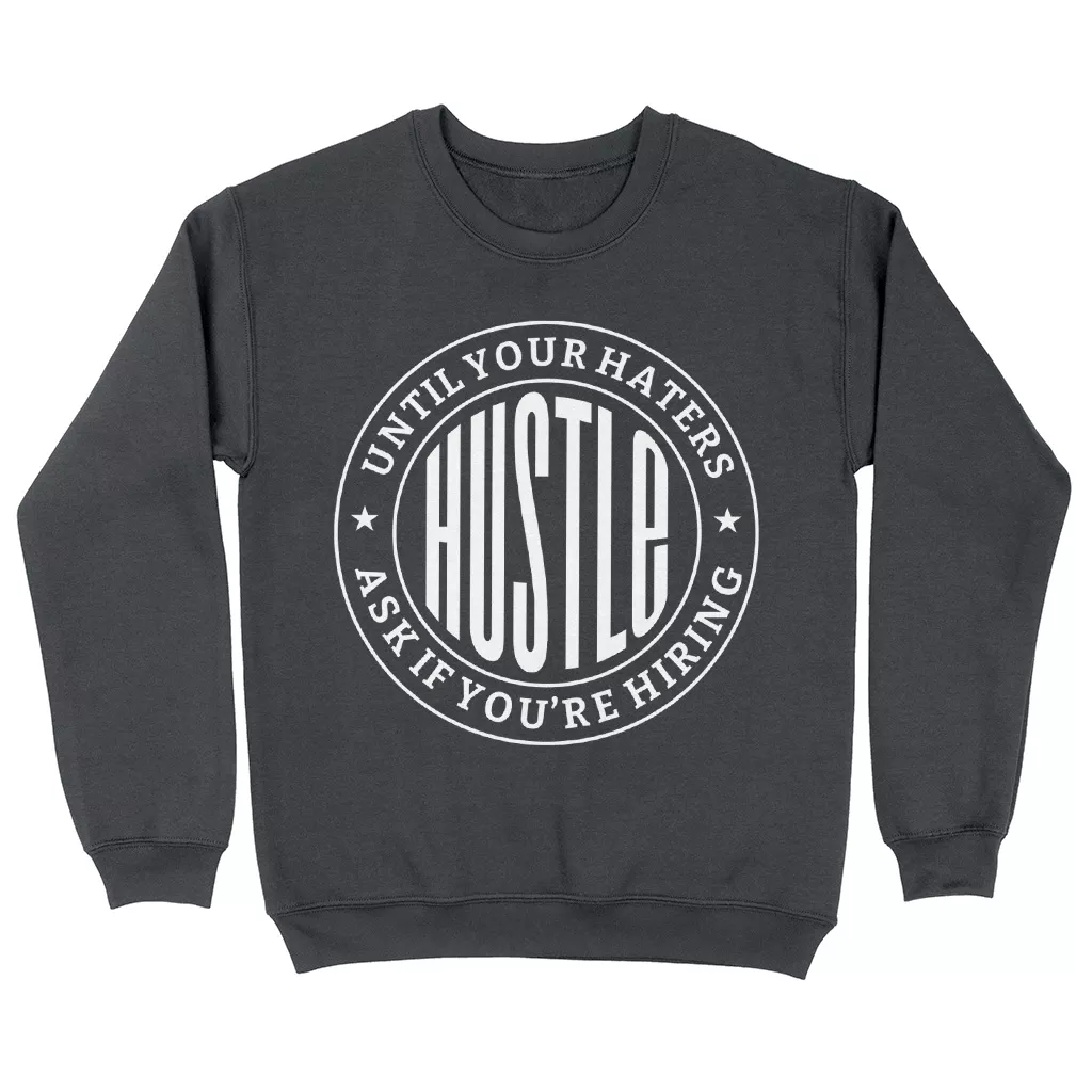 Hustle Until Your Haters Ask If You’re Hiring Sweatshirt – Funny Crewneck Sweatshirt – Hustle and Grind Unisex Sweatshirt