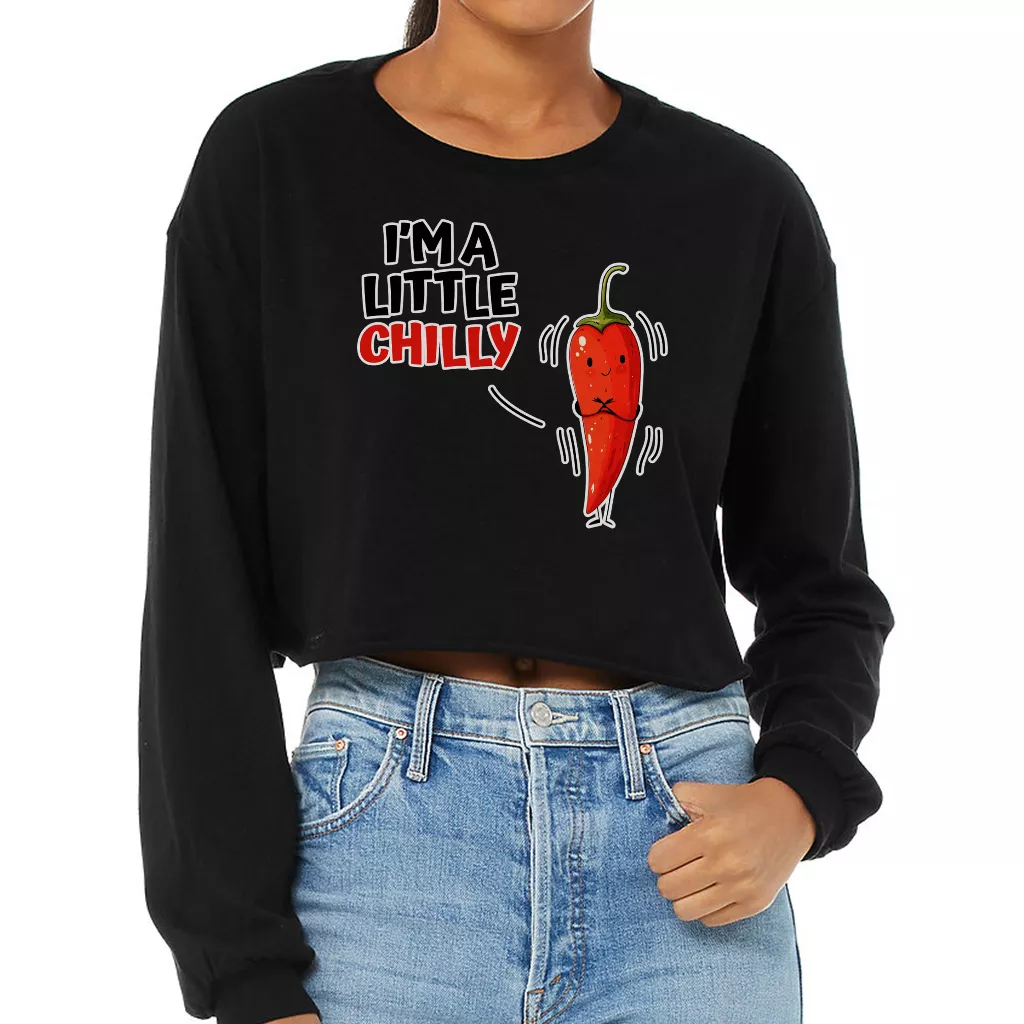 I’m A Little Chili Cropped Long Sleeve Sweatshirt – Funny Pun Women’s Crop Top – Gift for Foodie Long Sleeves Pullover