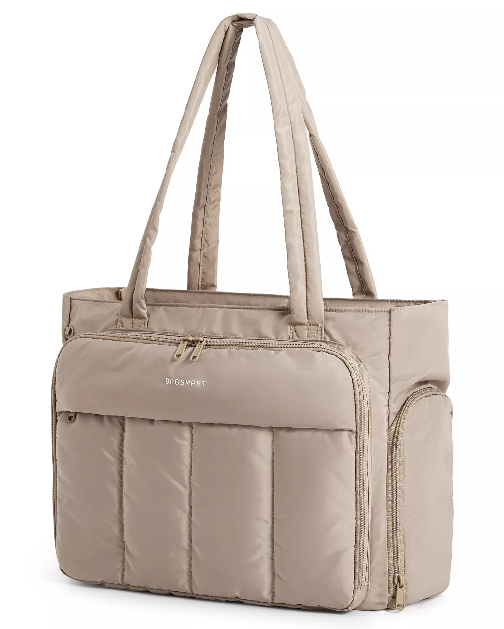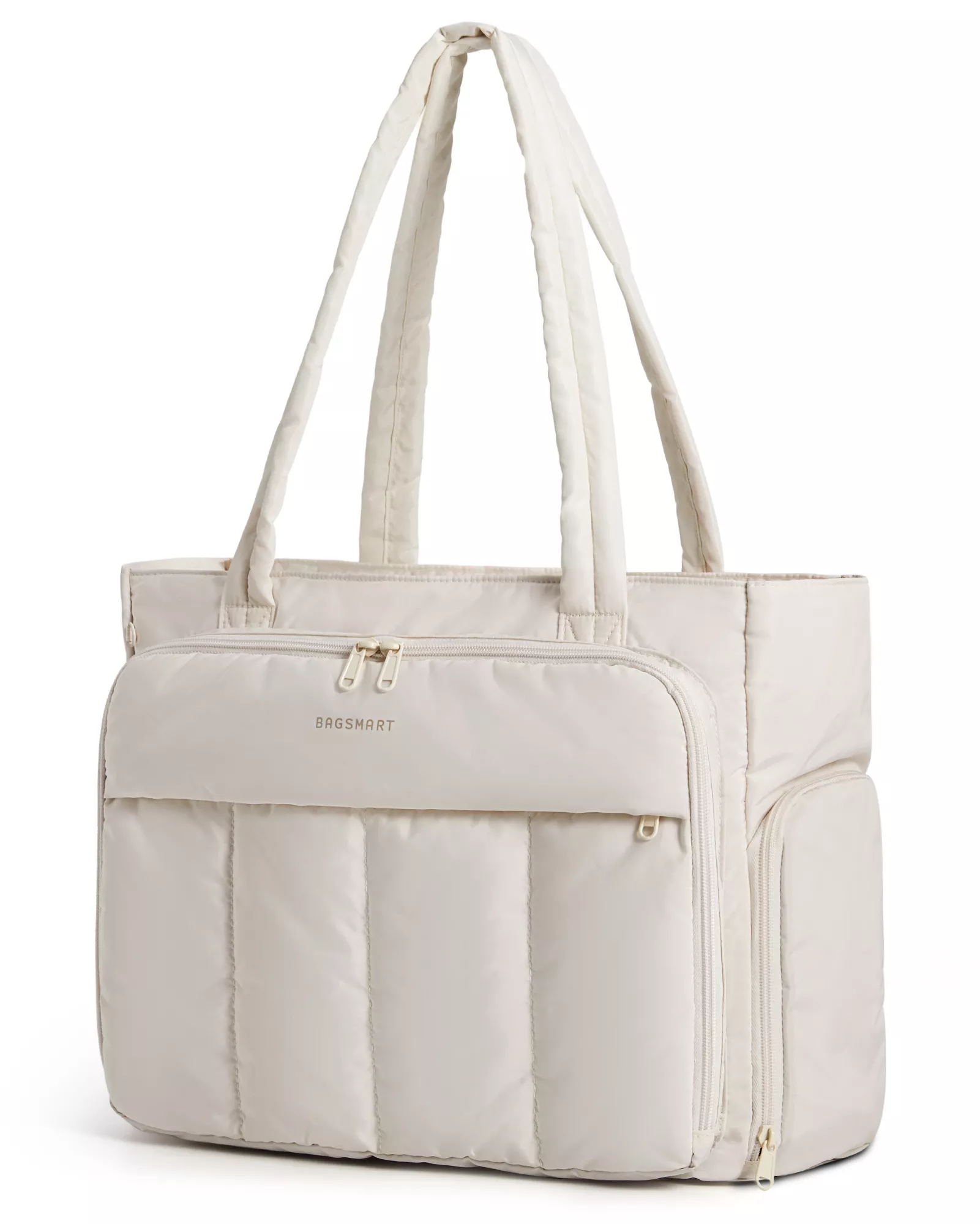 Meet the tote that keeps up with your busiest days. This lightweight puffer-style bag is designed for women who need function, style, and versatility all in one place. Whether you’re heading to work, traveling, going to the gym, or juggling multiple roles, this all-in-one tote makes every day easier. With a perfectly balanced size and weighing only 1.3 lbs, it offers a roomy yet manageable design that fits effortlessly into your routine.