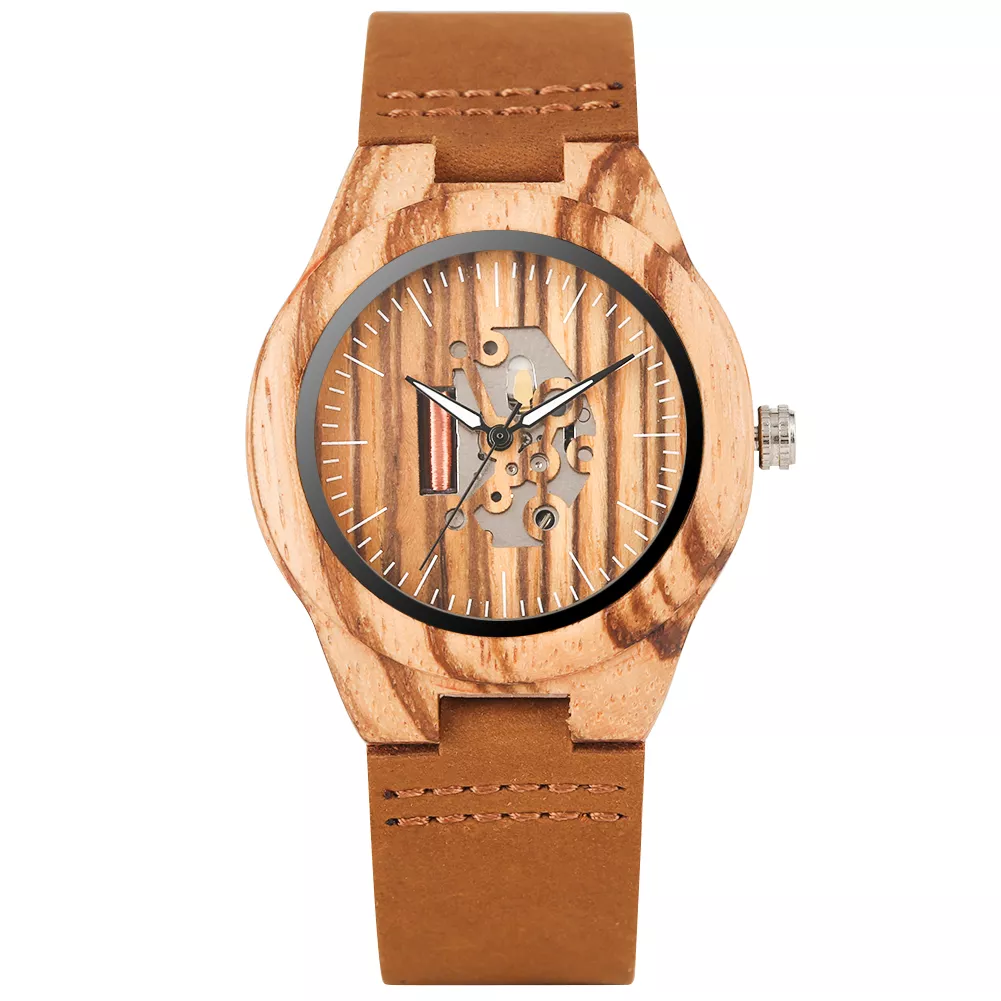 The hollow dial design offers a glimpse into the inner workings of the watch while maintaining a chic appearance. Made from high-quality zebra wood, each watch is unique, displaying its distinctive grain pattern. The quartz movement ensures reliable timekeeping, so you’ll always be right on schedule. The soft leather wristband offers comfort and security, designed to fit snugly on your wrist while looking fashionable.