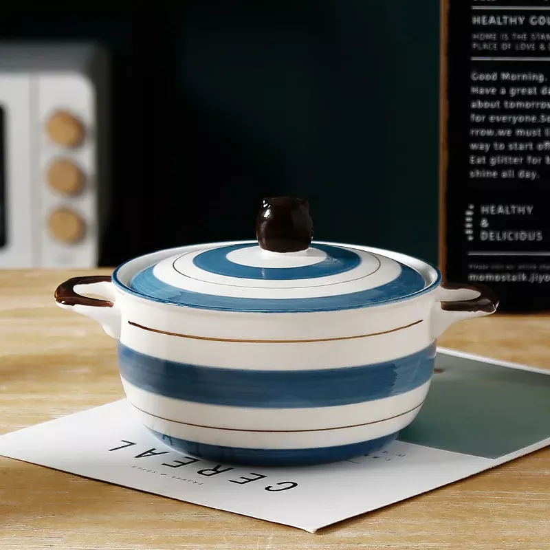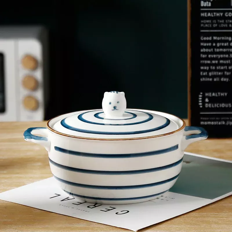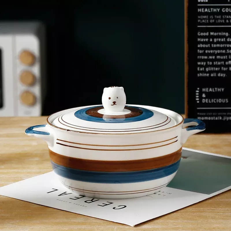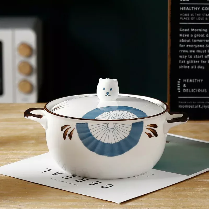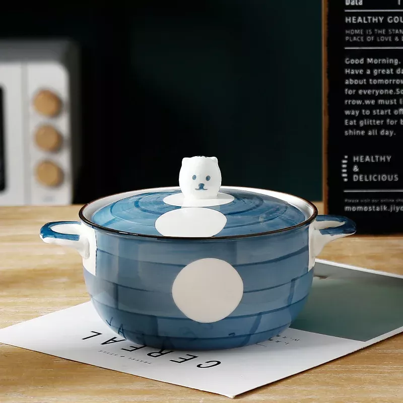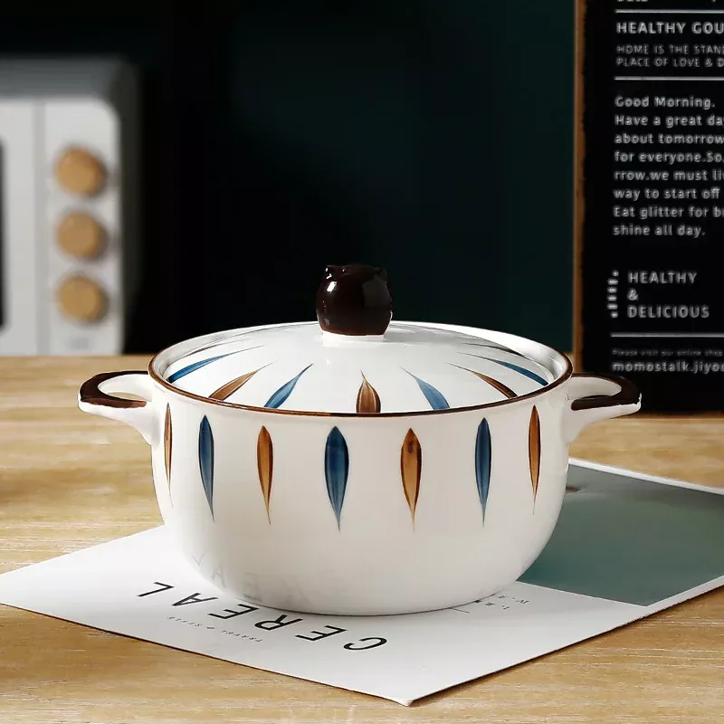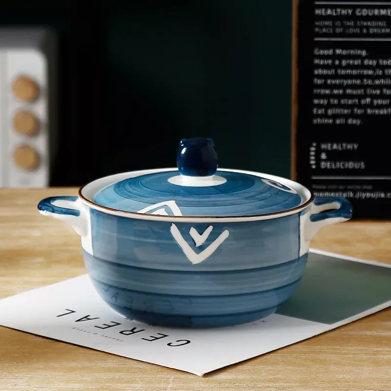 This ceramic bowl is designed to be both functional and stylish. It has a generous capacity of 850ml, making it ideal for hearty noodle dishes, comforting soups, or even fresh salads. The matching ceramic lid keeps food warm for longer, while the dual handles (binaural design) ensure safe and convenient handling, even when the bowl is hot. Its eco-friendly ceramic material is durable, resistant to high temperatures, and easy to clean, making it a reliable choice for daily use.