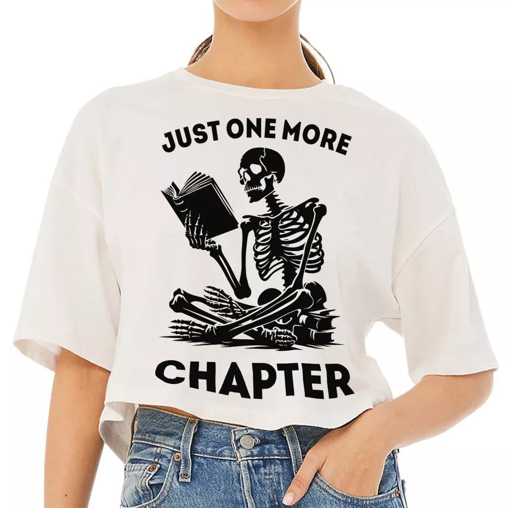Just One More Chapter Cropped T-Shirt – Book Club Trendy Tee – Bookworm Women’s Basic T-Shirt