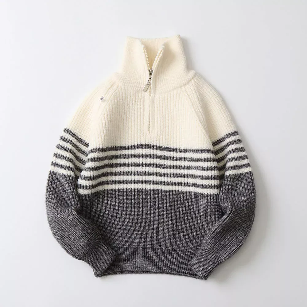 Get your child ready for the cooler seasons in comfort and style with our Striped Cashmere Knit Turtleneck Sweater. Designed for boys aged 6 to 14, this cozy pullover is the perfect autumn and winter wardrobe essential. Made from ultra-soft knitwear that feels gentle on the skin, it keeps your little one warm without compromising on breathability or style.
