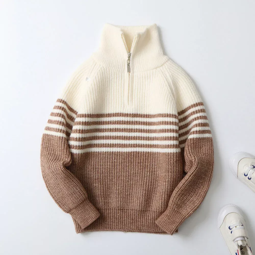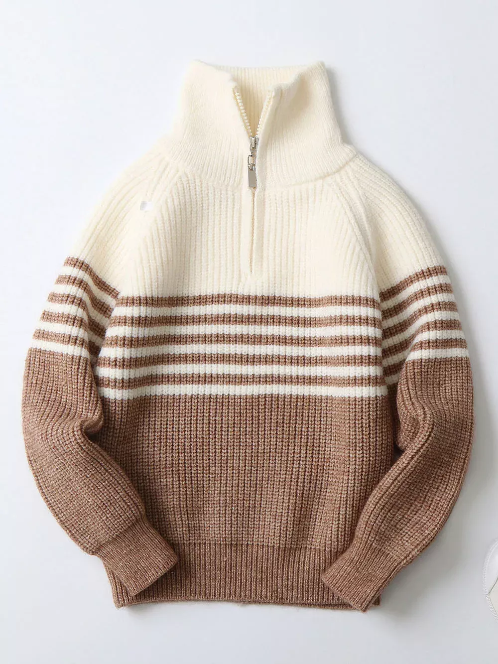 With a classic turtleneck design and timeless striped pattern, this sweater blends casual charm with refined fashion. Whether layered under a coat or worn on its own, it’s ideal for school, weekend outings, family gatherings, or even holiday photos. It’s a piece they’ll reach for again and again.