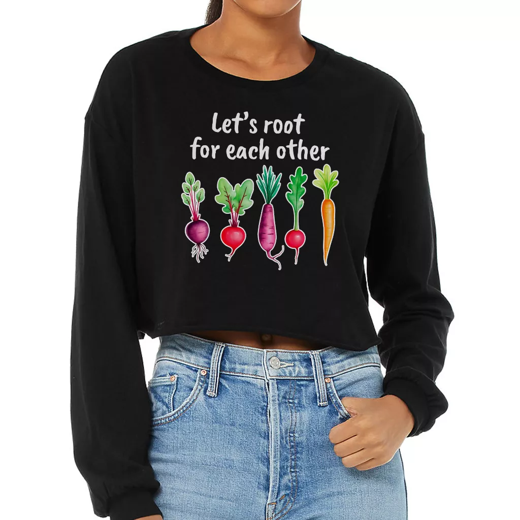 Let’s Root For Each Other Cropped Long Sleeve Sweatshirt – Spring Women’s Crop Top – Uplifting Long Sleeves Pullover