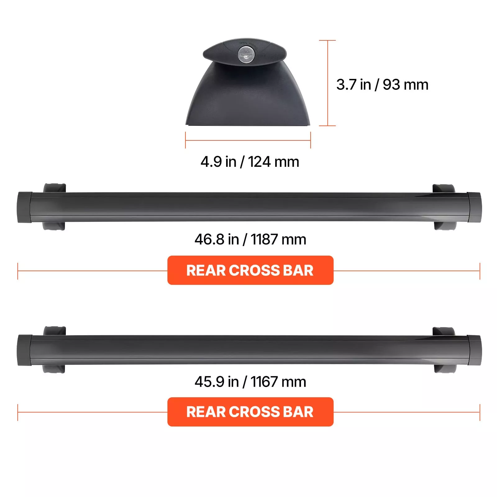 Built from high-quality aluminum, these roof rack cross bars are engineered for strength and stability while keeping weight to a minimum. With a robust 200 lbs load capacity, they can safely handle heavy cargo for long journeys. The aerodynamic design minimizes wind resistance and reduces noise, ensuring a smoother, quieter ride even at highway speeds. A secure metal locking system with anti-theft protection and two included keys keeps your belongings safe no matter where the road takes you.