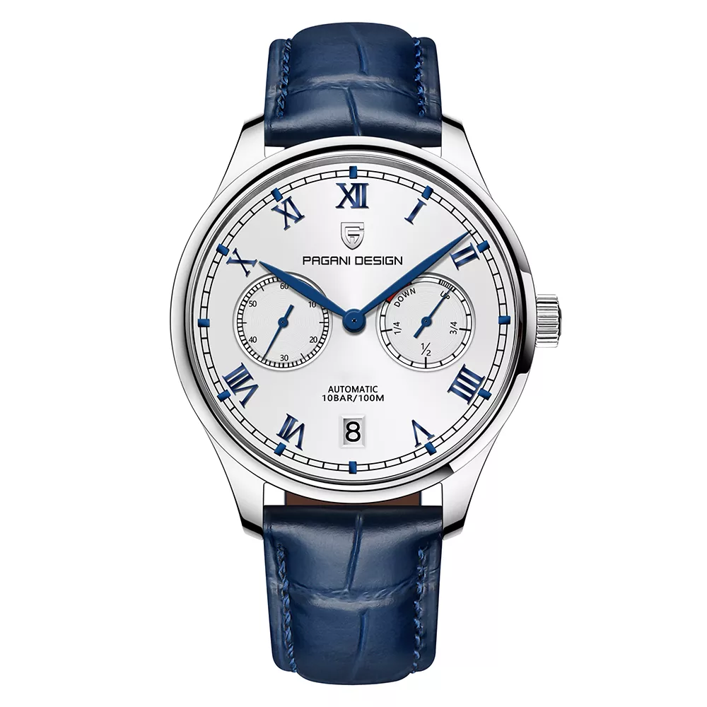 Step into the world of classic aviation-inspired style with this new pilot series automatic watch. Crafted for gentlemen who value precision, durability, and elegance, this timepiece blends traditional design with advanced features. Its sleek stainless steel case, bold analog dial, and power reserve display make it more than just a watch — it’s a statement of confidence and sophistication.