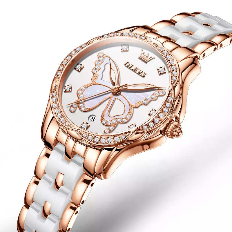 Discover elegance redefined with our Luxury Rose Gold Butterfly Diamond Wristwatch. This stunning timepiece combines exquisite design with functionality, making it the perfect accessory for the modern woman. Featuring intricate butterfly motifs adorned with sparkling diamonds, this watch beautifully captures the light and complements any outfit. Made from high-quality materials, including a stainless steel case and a durable ceramic band, this watch promises both style and longevity.