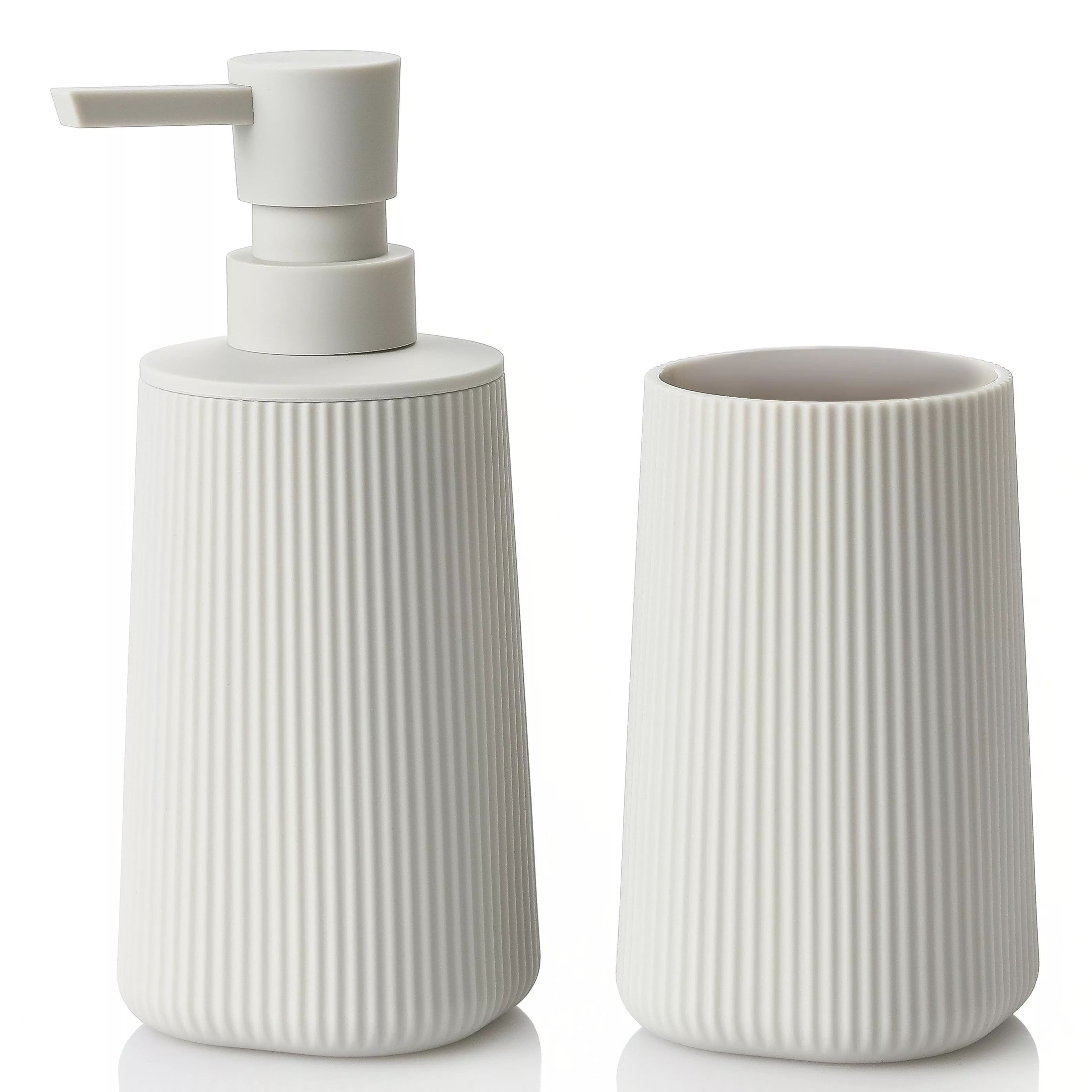 This accessory set is perfect for both small and large bathrooms. Whether you’re looking to add a touch of elegance to your master bath or create a more organized and functional space in a guest bathroom, this set has you covered. The soap dispenser is perfect for liquid soap or lotion, while the toothbrush holder provides a clean and safe spot for your toothbrushes. Keep your bathroom looking stylish and clutter-free with this practical yet chic accessory set.
