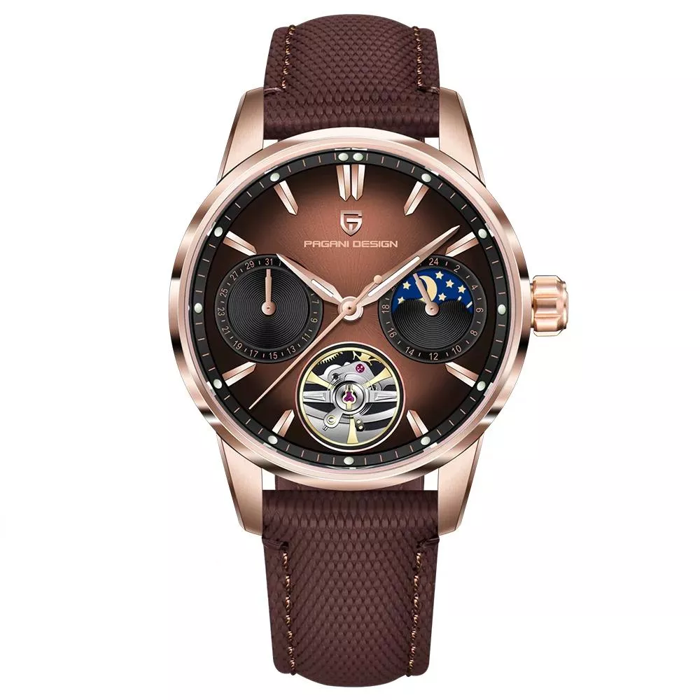 Step into a world where classic aviation-inspired design meets cutting-edge precision. This men’s luxury automatic watch combines striking aesthetics with advanced functionality, creating a timepiece that makes a statement every time you wear it. Featuring a numberless round dial, sapphire glass, and a mesmerizing moonphase complication, it’s a watch designed not just to tell time—but to elevate your presence.