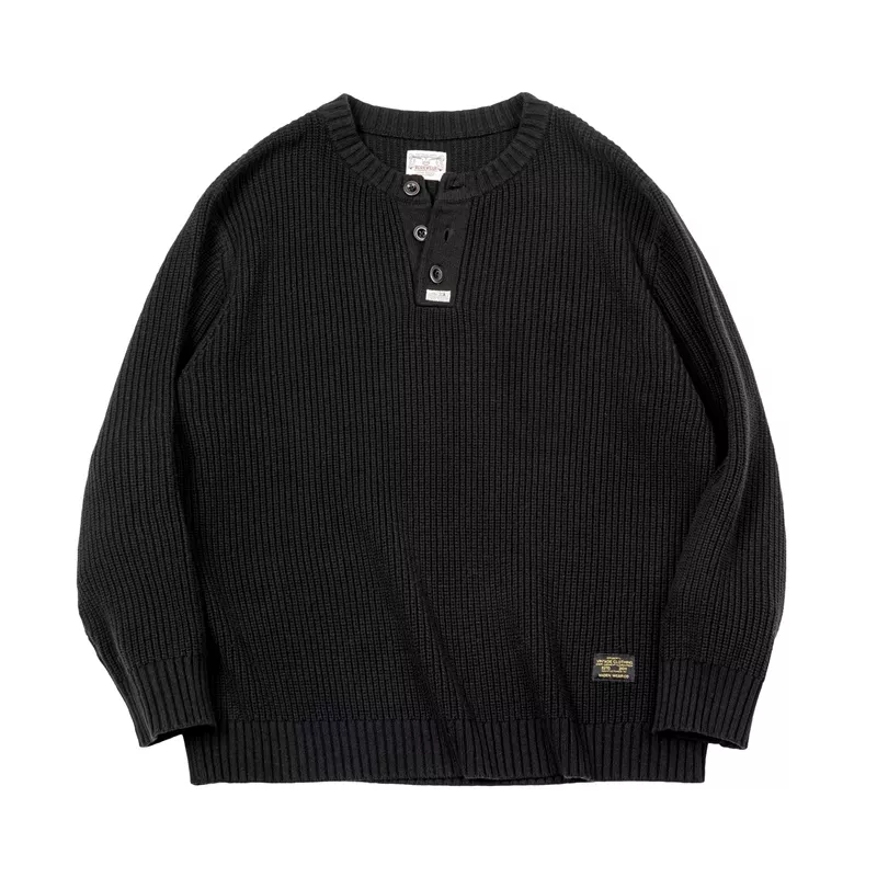 Bring effortless cool to your wardrobe with this men’s retro Henley pullover sweater, crafted for crisp autumn mornings and chilly winter nights. With its classic American workwear vibe and sleek black knit finish, this piece delivers understated style with a rugged edge. The subtle vertical stripe texture adds depth and a refined vintage feel, making it a versatile choice for men who value timeless design and cozy comfort.