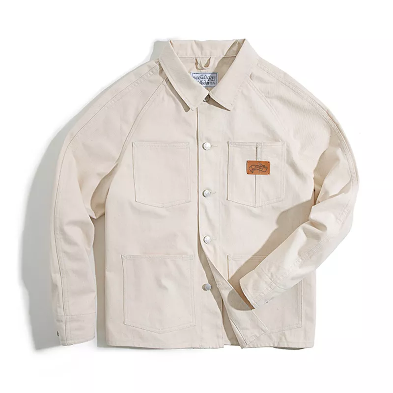 Step out in effortless style with this men’s vintage white denim jacket, designed for early autumn wear. Featuring a distinctive square neckline and raglan sleeves, this jacket brings a fresh twist to classic workwear aesthetics. Made from durable cotton twill fabric with a polyester lining, it offers the perfect balance of comfort and durability for your daily adventures.