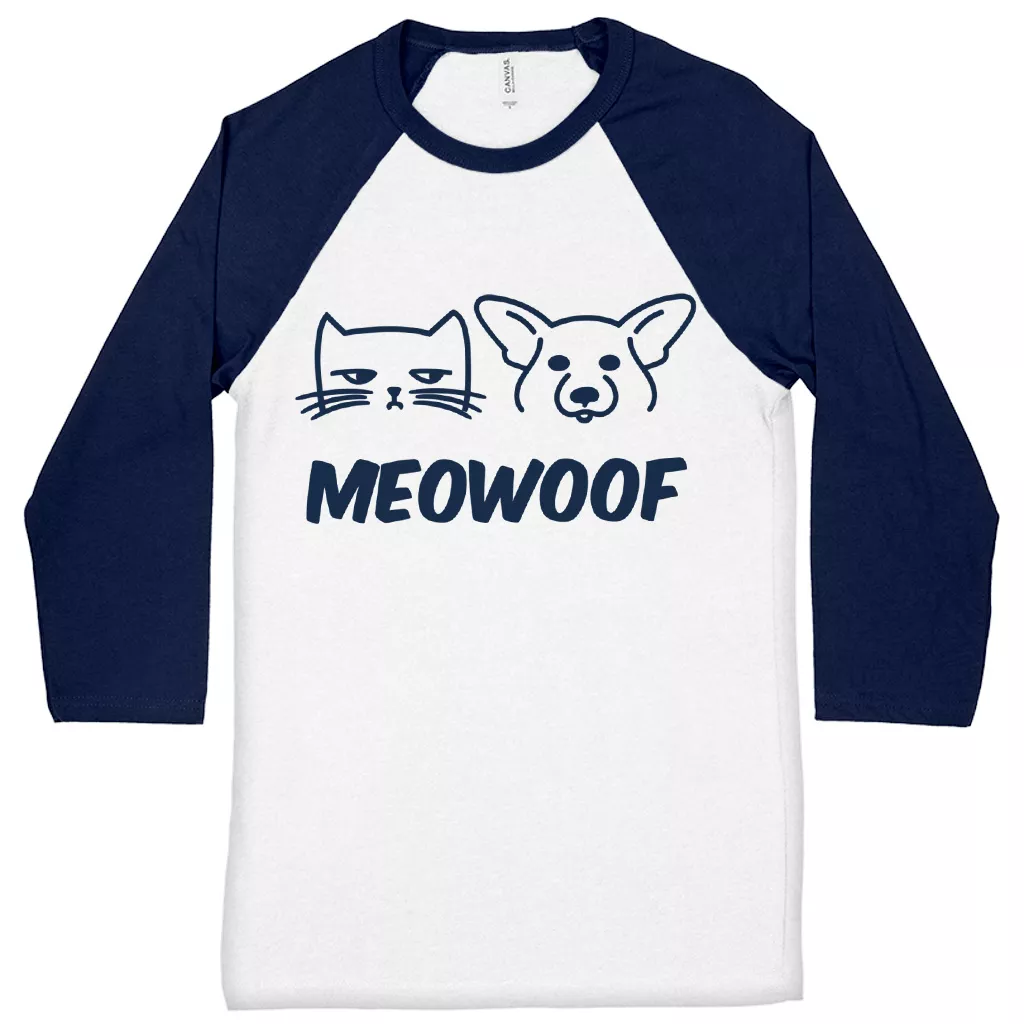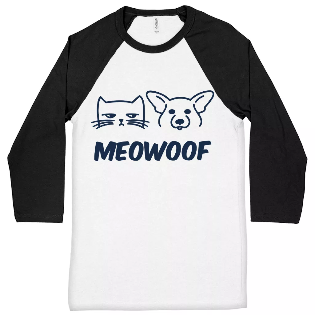 Meowoof Baseball T-Shirt – Pets Owner Gift 3/4 Sleeve – Funny Animal Raglan Jersey Shirt