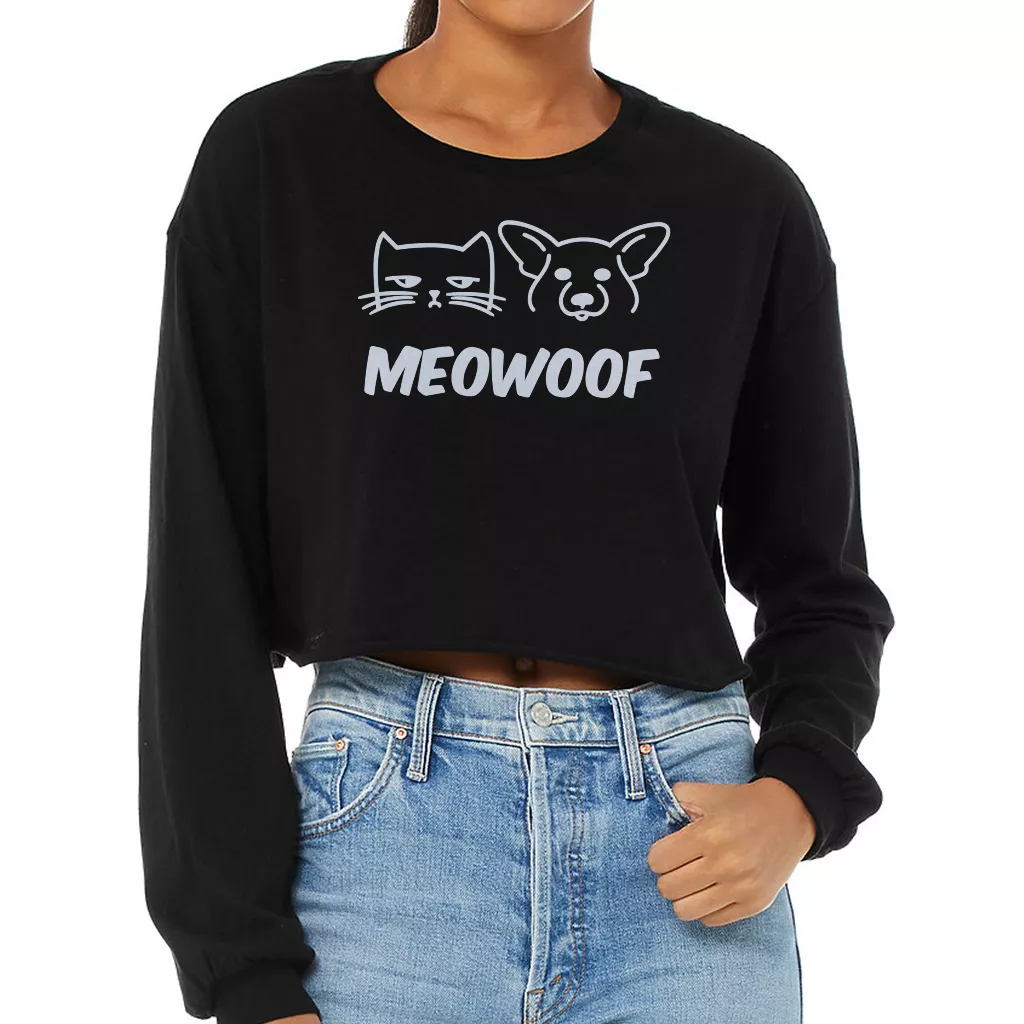 Meowoof Cropped Long Sleeve Sweatshirt – Funny Animal Women’s Crop Top – Pets Owner Gift Long Sleeves Pullover