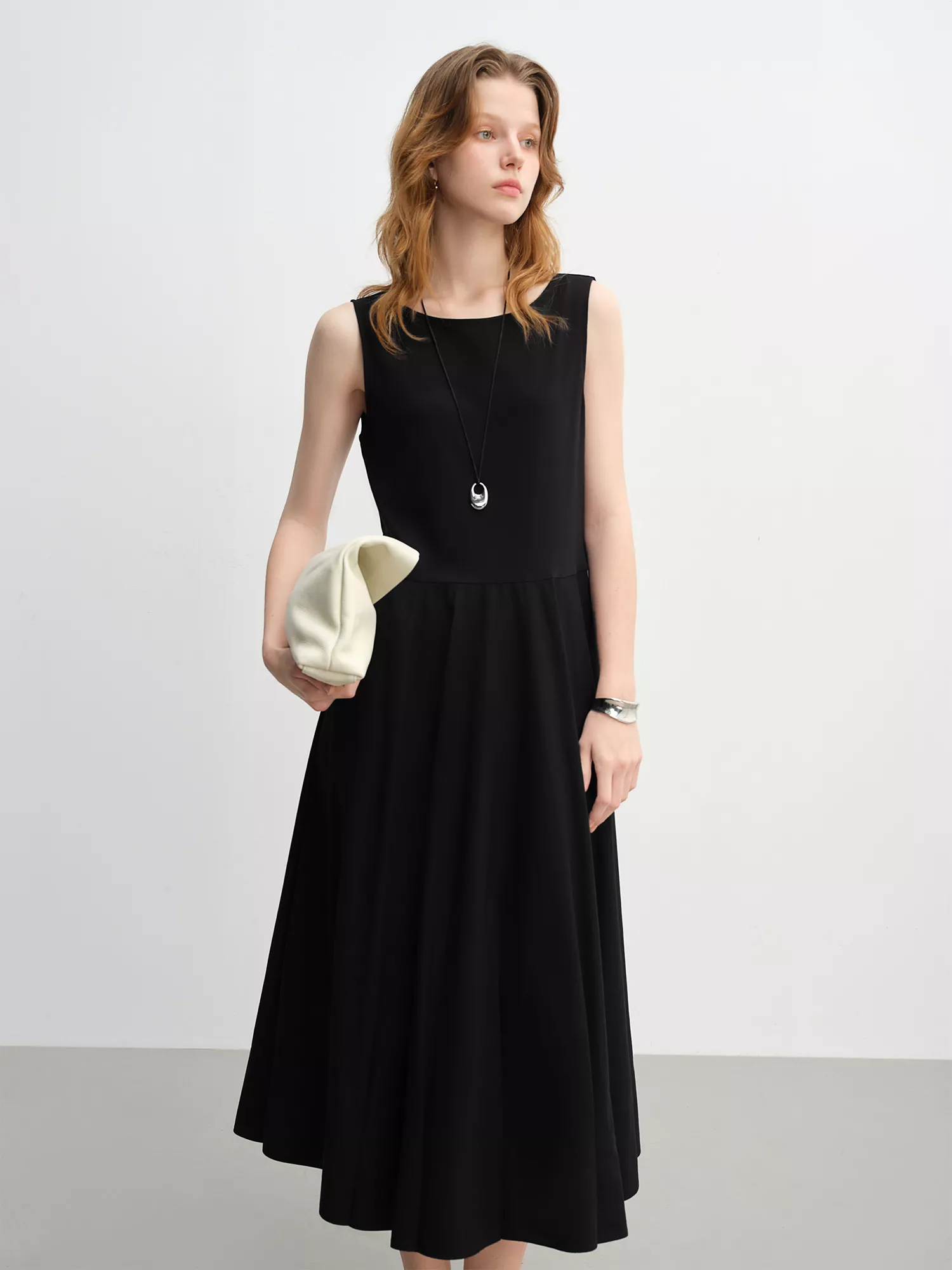 Minimalist Sleeveless Black A-Line Dress for Women – Casual Mid-Calf Cotton Dress