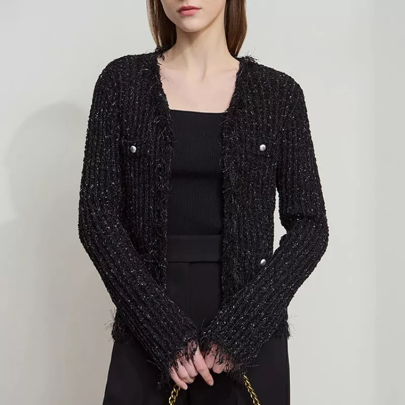 Stepwith elegance and ease in this Minimalist Tassel Knit Cardigan – a wardrobe essential for any woman who loves a polished look with a touch of flair. Designed for versatility and all-day comfort, this short, straight-fit cardigan brings together clean lines, a classic silhouette, and charming tassel accents to elevate your everyday office style or weekend ensemble. Its open-stitch front makes it the perfect throw-on piece for those days when light layering is key.