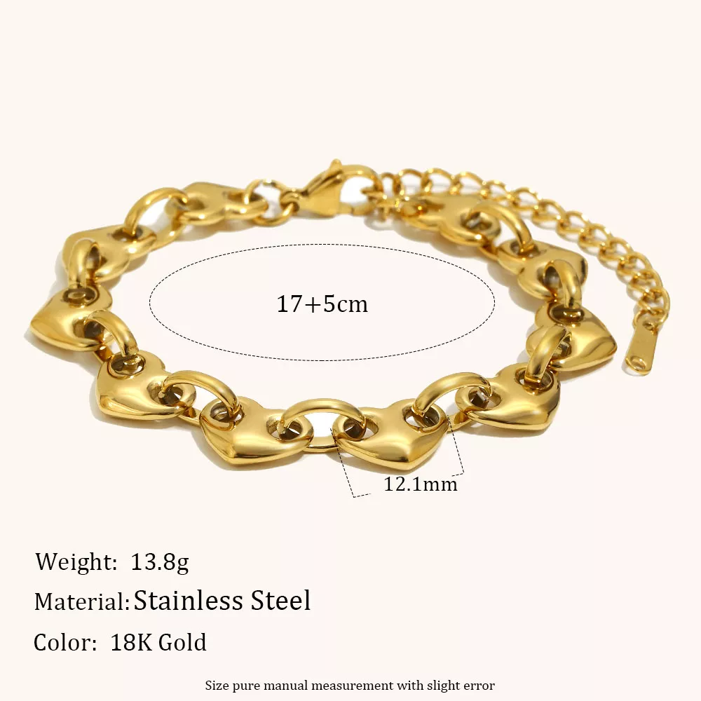 Crafted from durable 316L stainless steel and plated with luxurious 18K gold, this bracelet offers both lasting beauty and resistance to wear and tear. The unique heart-shaped love ring splicing design brings a touch of romance and sophistication, making it a perfect accessory for both work and play. The hypoallergenic properties ensure that it’s safe for even the most sensitive skin, while the waterproof feature ensures it stays in pristine condition regardless of weather or moisture exposure.