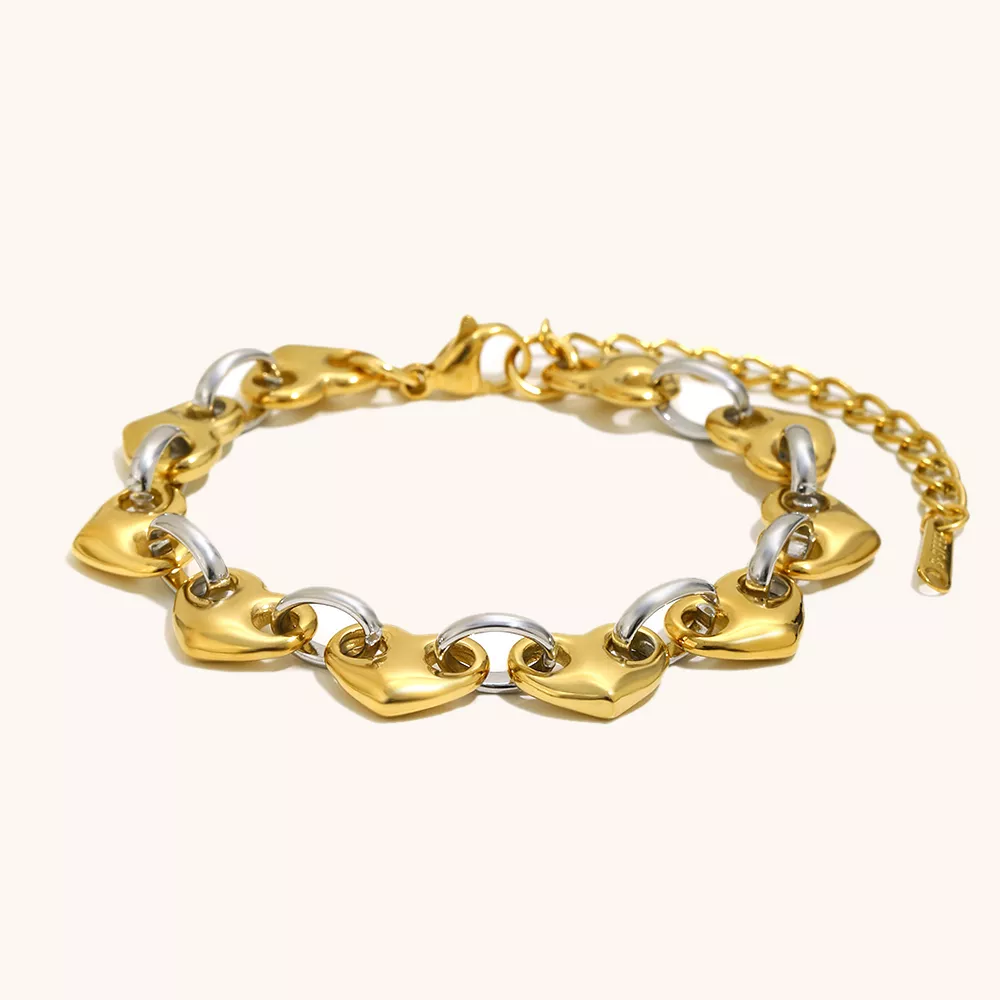 Mixed Color Heart Love Ring Stainless Steel Women’s Bracelet – 18K Gold Plated