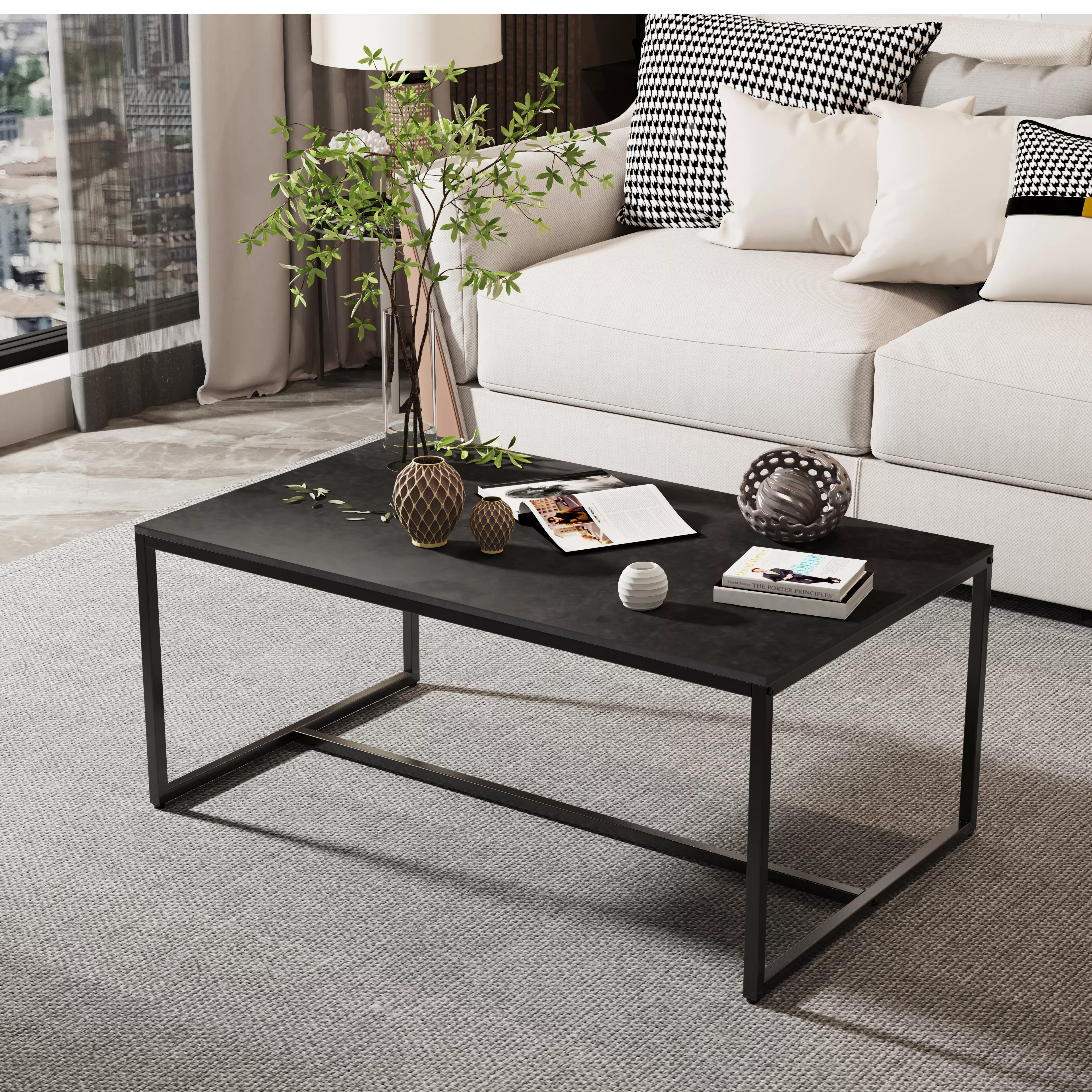 Modern Rectangular Coffee Table – Sintered Stone with Black Metal Frame