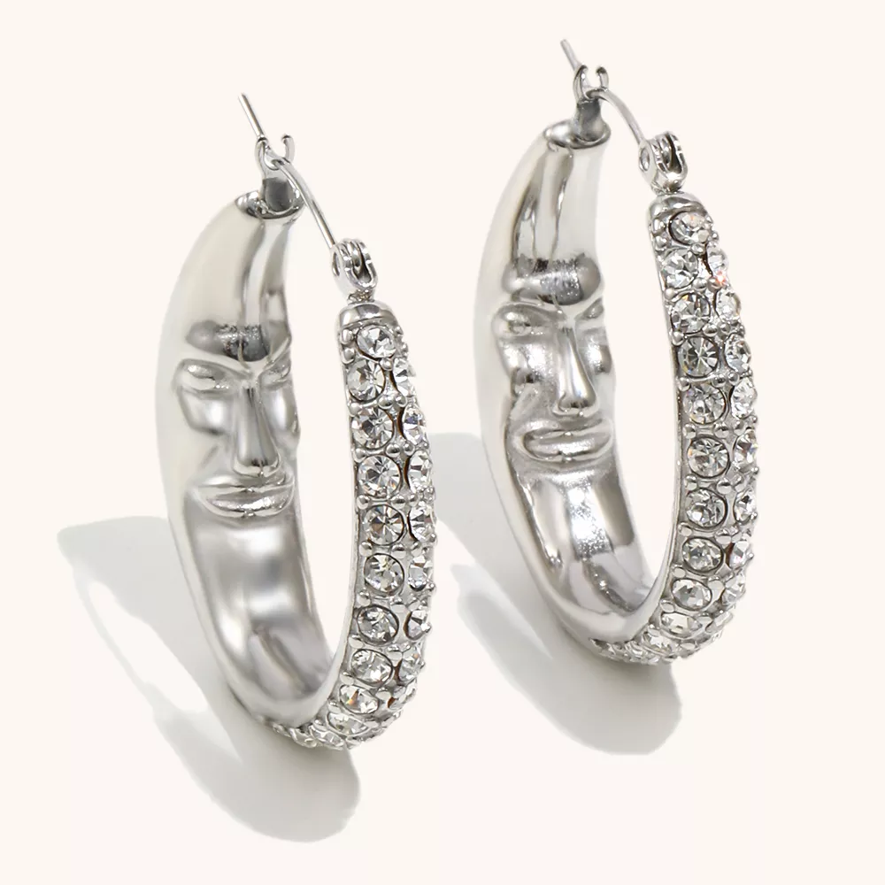 Moon Zircon Stainless Steel Hoop Earrings – PVD Gold Plated Women’s Jewelry