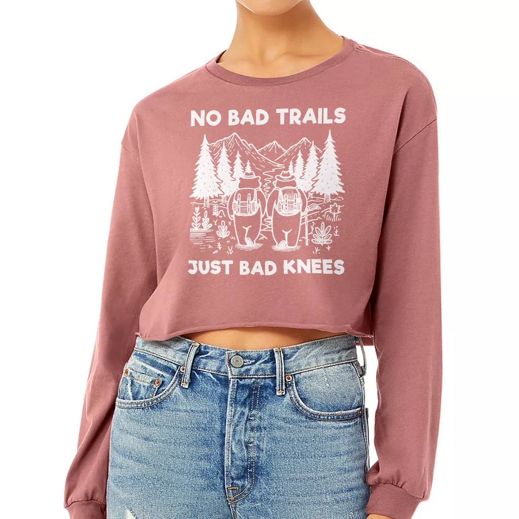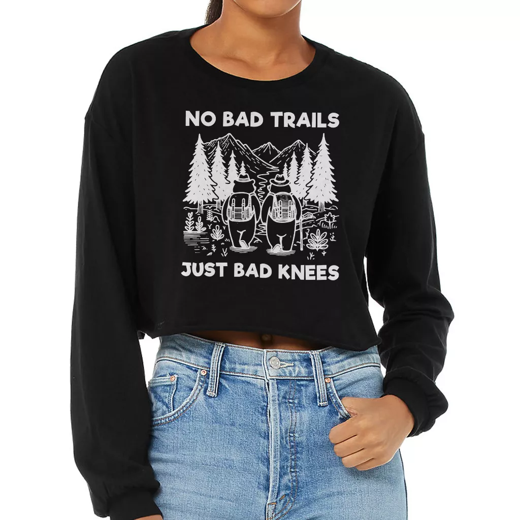 No Bad Trails Just Bad Knees Cropped Long Sleeve Sweatshirt