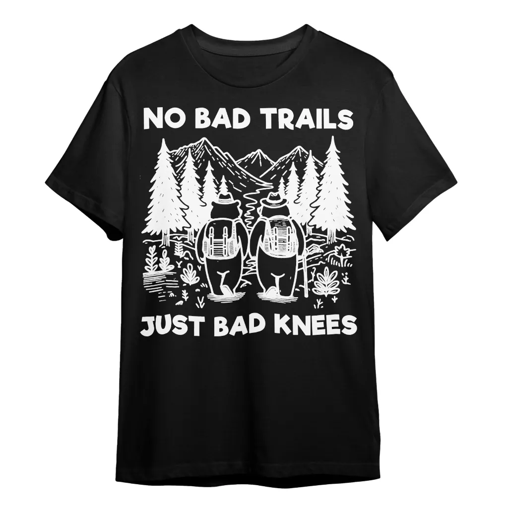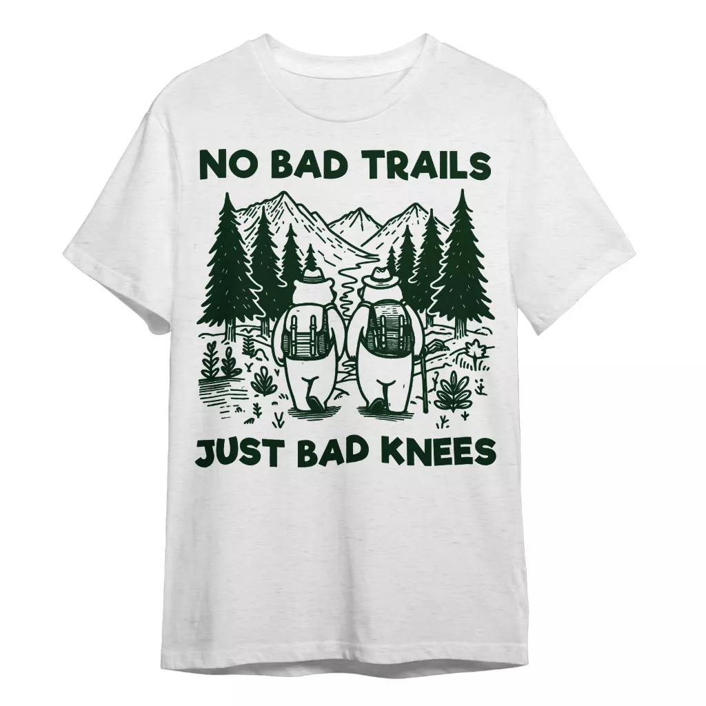 No Bad Trails Just Bad Knees T-Shirt – Retro Adventure Heavy Cotton Tee – Cute Bears Shirt