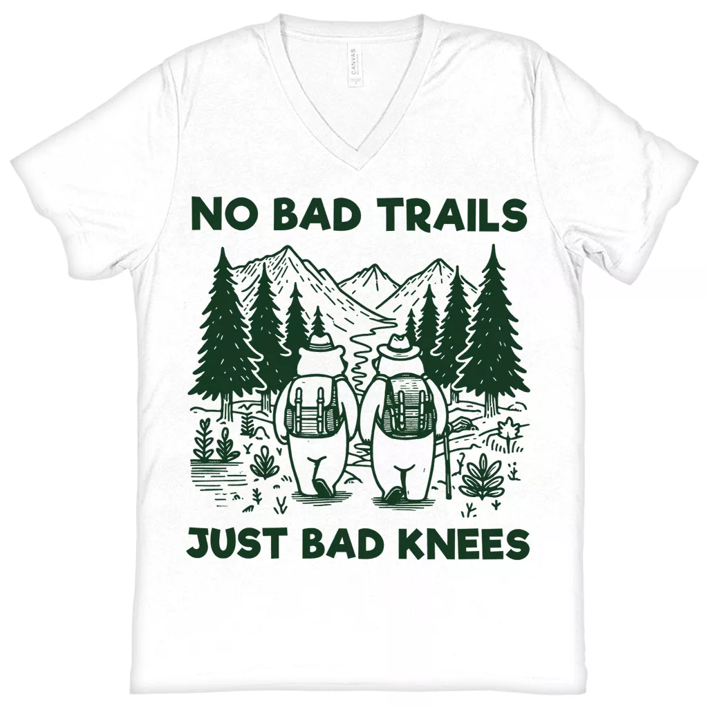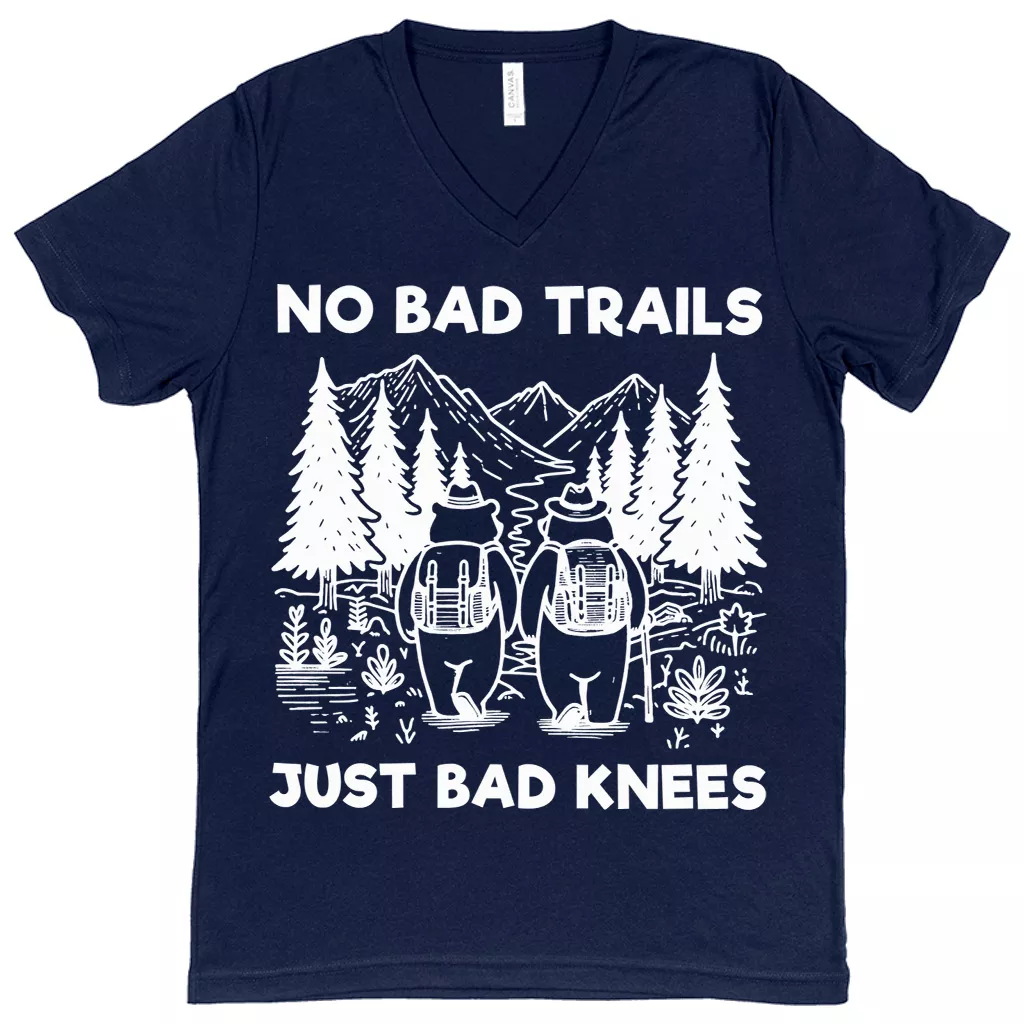 No Bad Trails Just Bad Knees V-Neck T-Shirt – Retro Adventure Basic T-Shirt – Cute Bears Tee