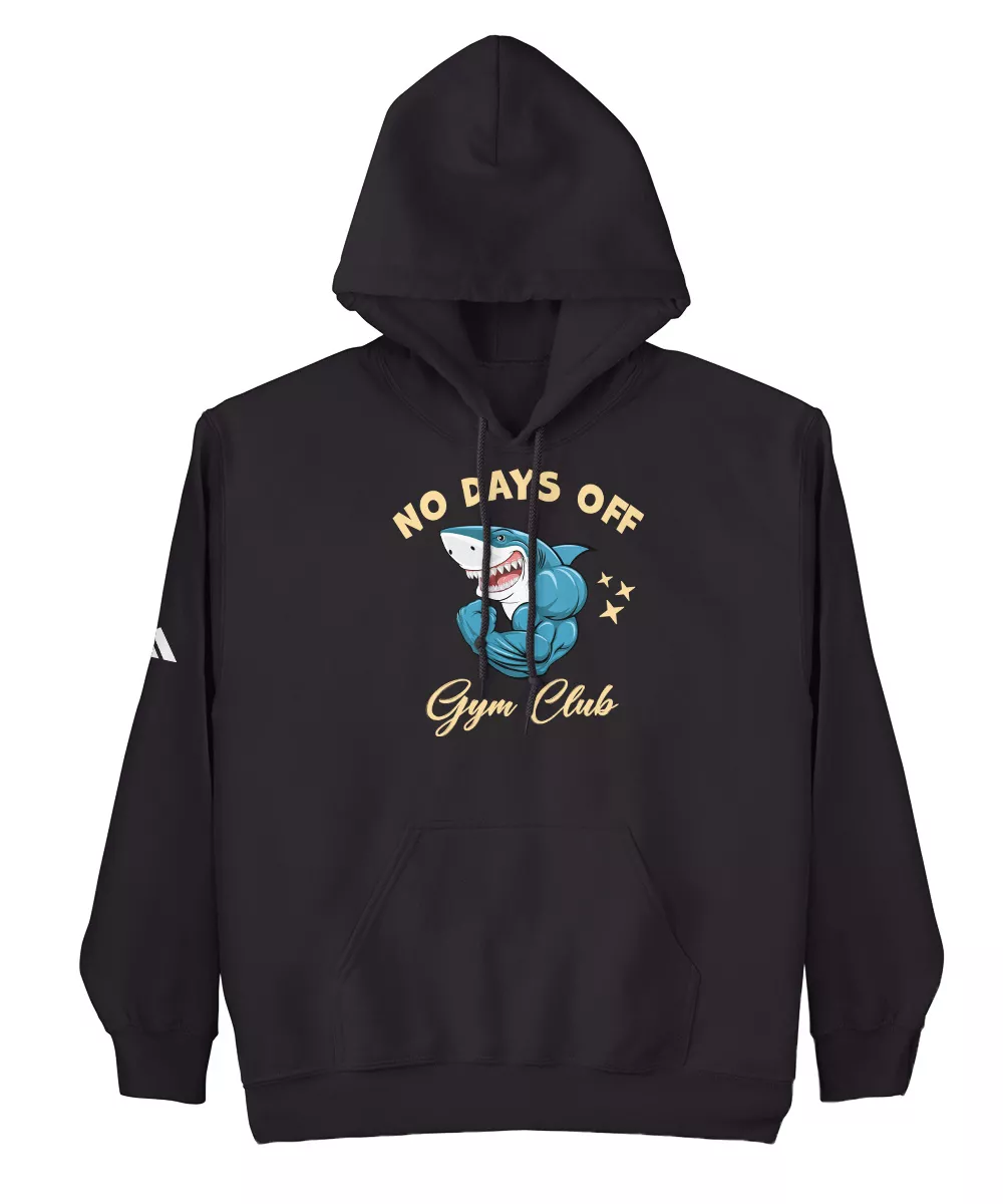 No Days Off adidas Hoodie – Muscular Shark Unisex Fleece Hoodie – Fitness Motivation Hooded Sweatshirt