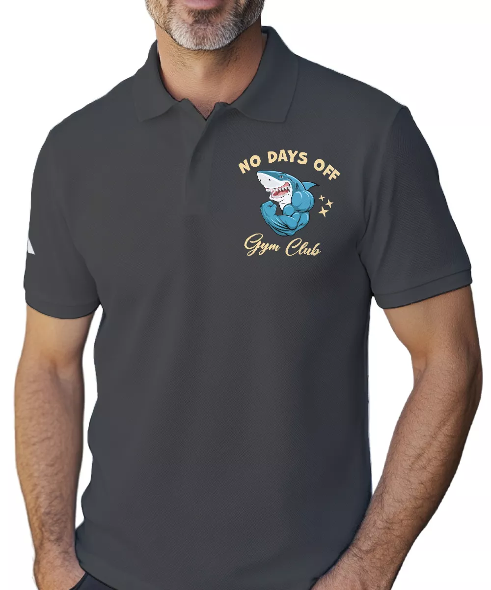 No Days Off adidas Polo Shirt – Muscular Shark Short Sleeve Tactical Shirts – Fitness Motivation Lightweight Golf Shirts