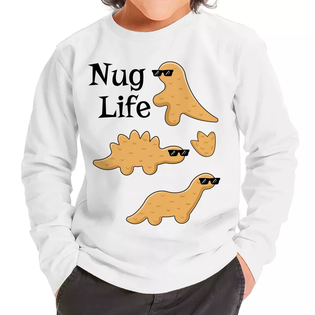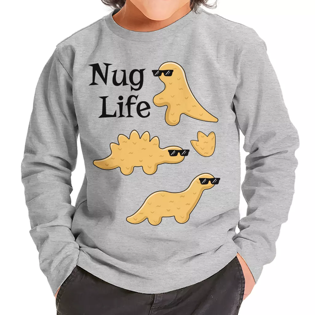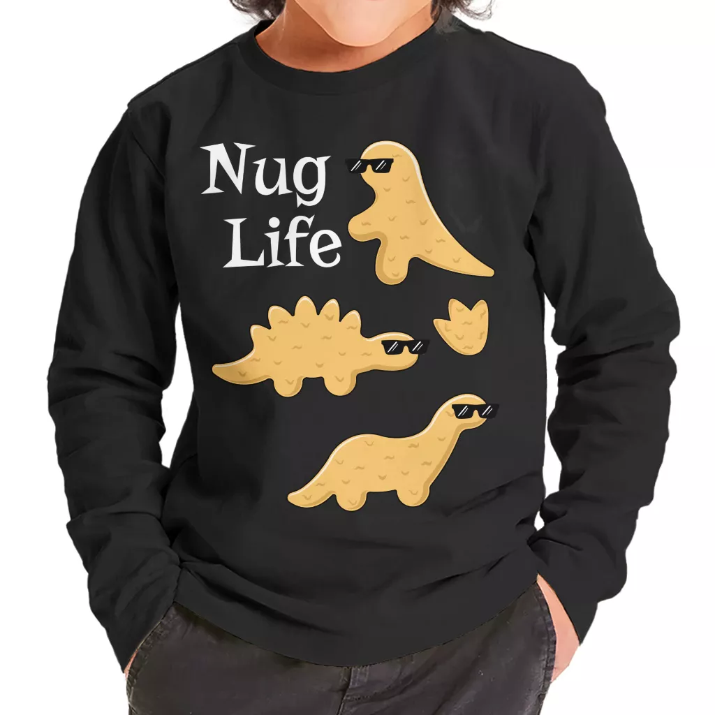 Nug Life Toddler Long Sleeve T-Shirt – Cool Graphic Boy Girl Tee – Dino Nugget T-Shirt for Kids