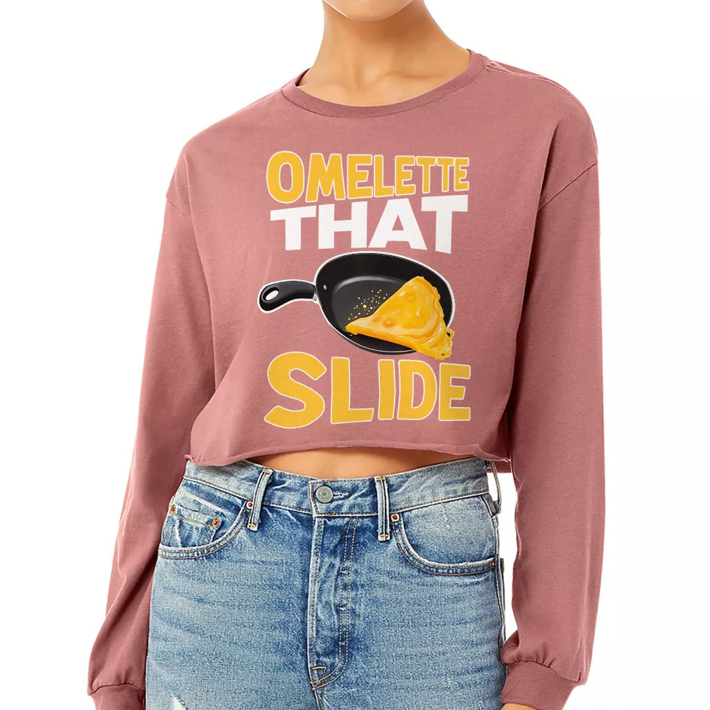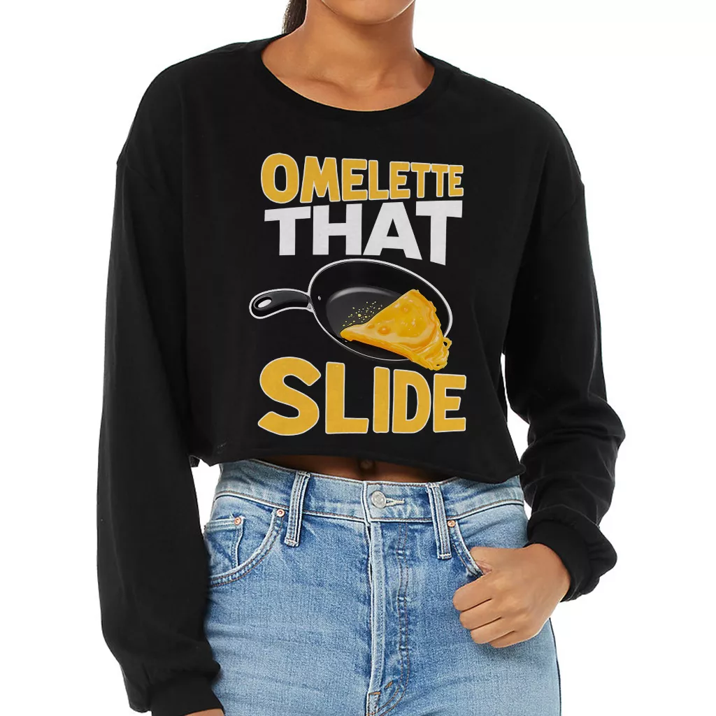 Omelette That Slide Cropped Long Sleeve Sweatshirt – Breakfast Graphic Women’s Crop Top – Wordplay Gift Long Sleeves Pullover