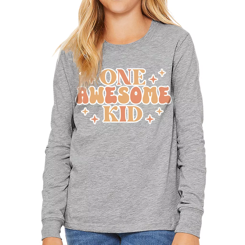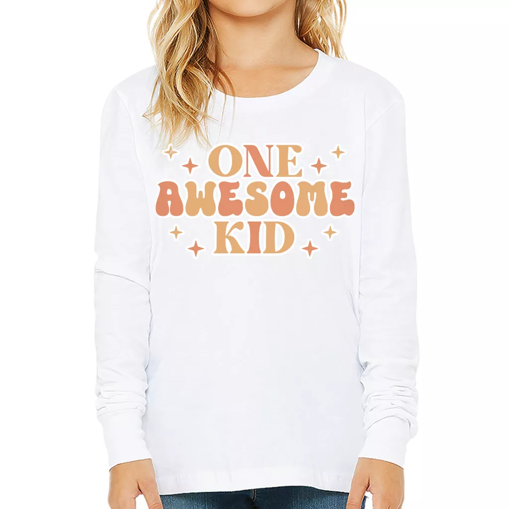 One Awesome Kid Kids’ Long Sleeve T-Shirt – Cute Kids Quote T-Shirt for Kids – Trendy Tee for Boys Girls