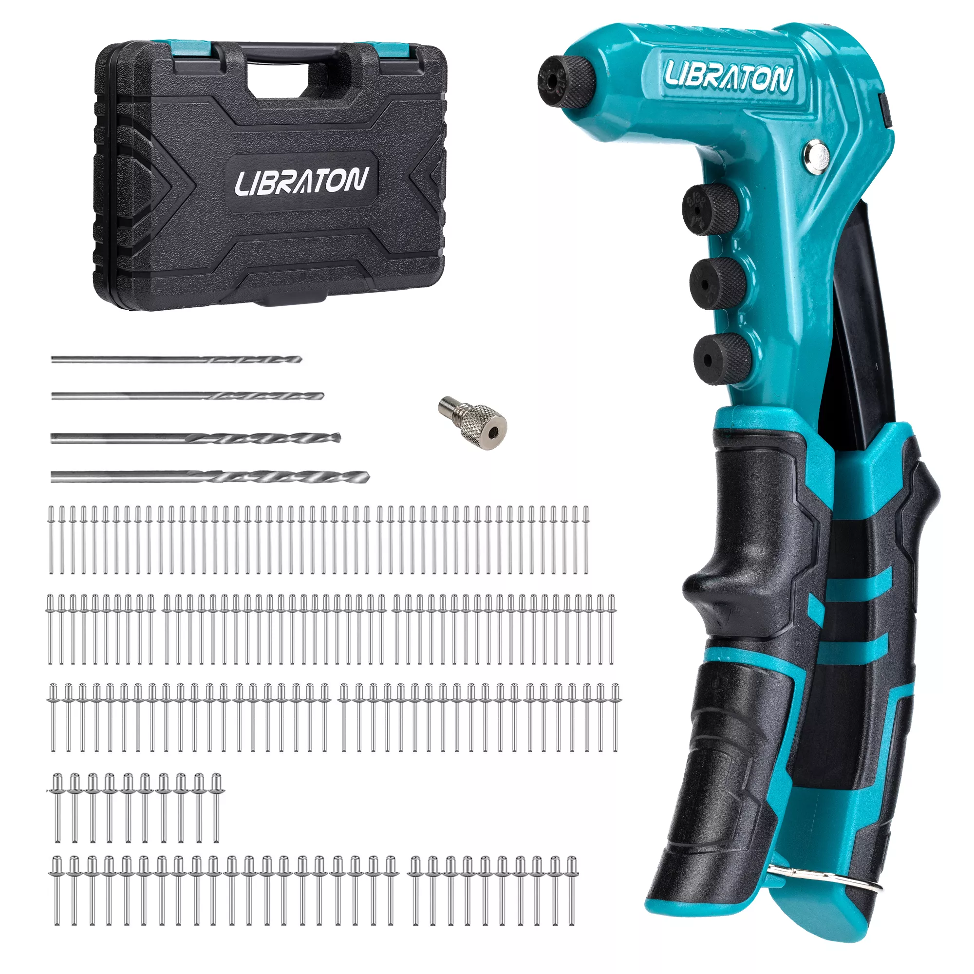 One-Handed Manual Rivet Gun Kit with 180 Rivets & Drill Bits