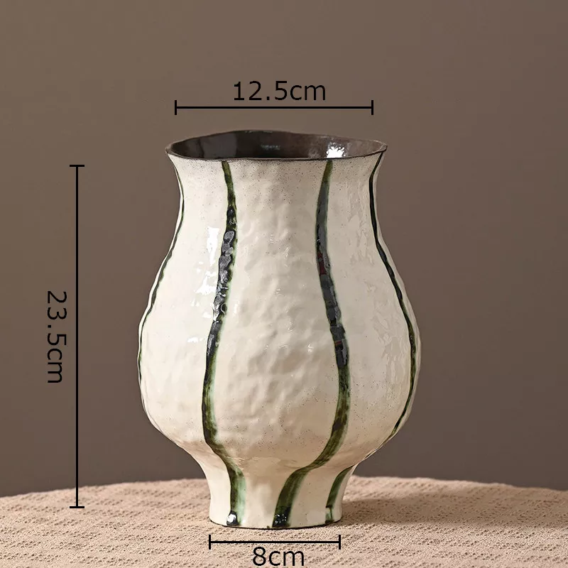 Made from durable ceramic and porcelain, this vase is built to last while maintaining a smooth, refined finish. The medium-sized design fits comfortably on coffee tables, dining tables, bedside stands, or office desks. A discreet drainage hole at the bottom allows it to hold artificial flowers, dried arrangements, or even small potted plants with ease.