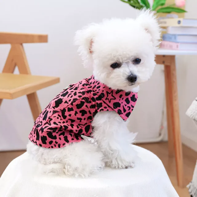 Pink Leopard Print Denim Vest for Small Dogs & Cats – Stylish Pet Outfit