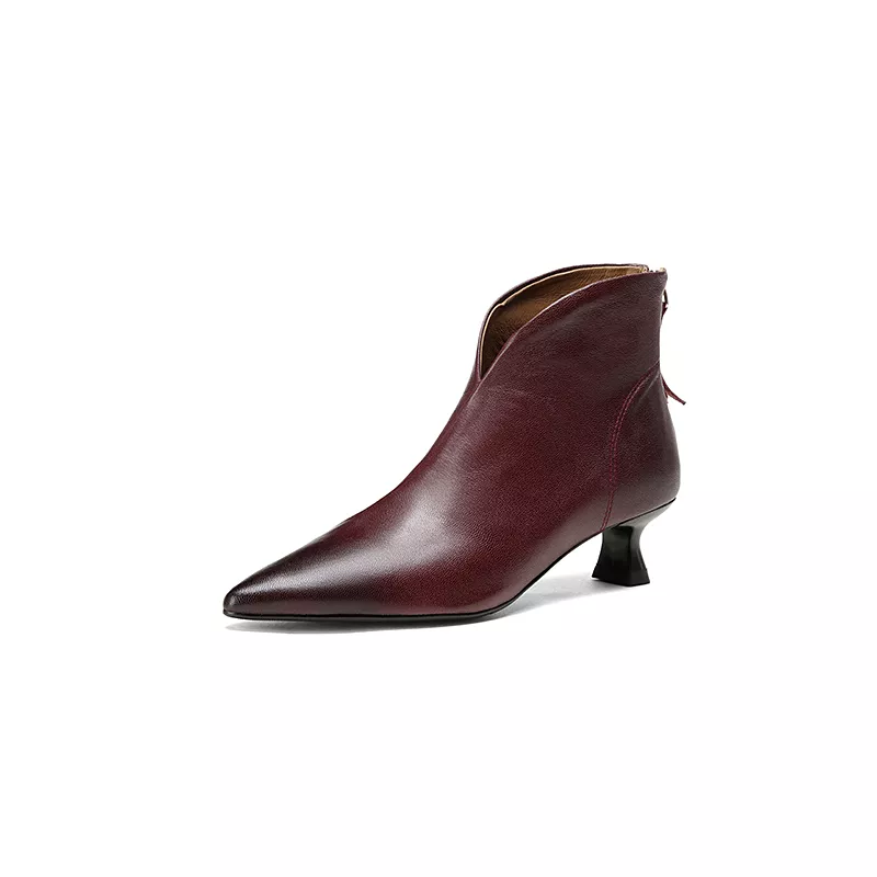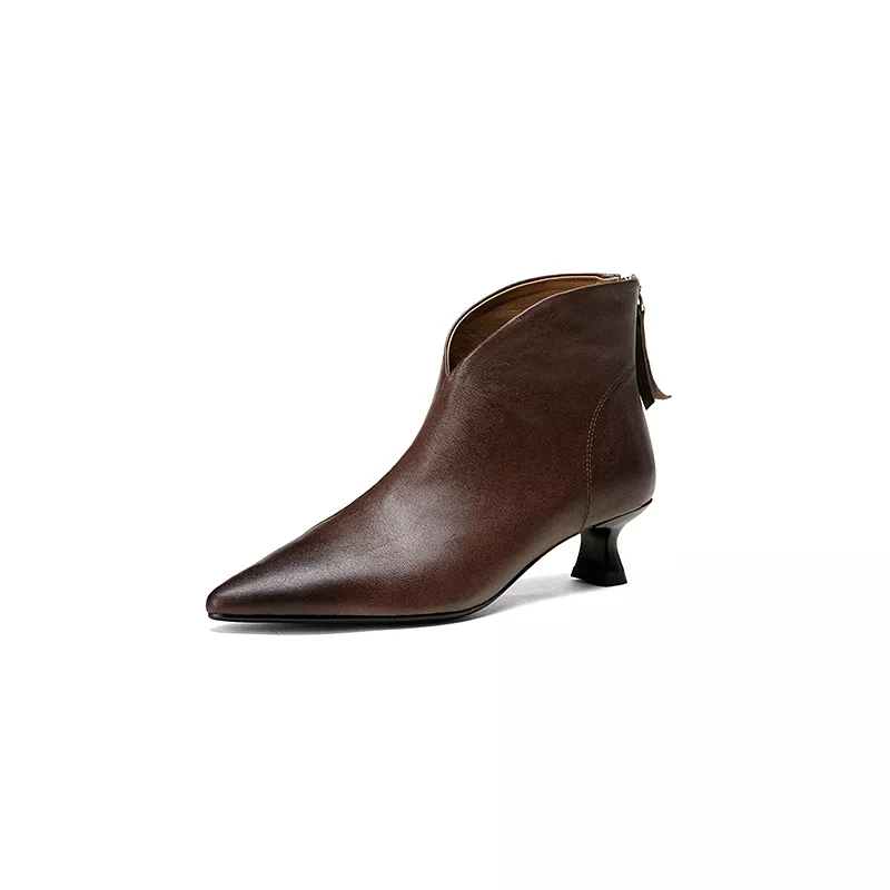Crafted from high-quality genuine leather, these boots offer long-lasting wear and luxurious comfort. The pointed toe elongates the legs, while the smooth side zipper ensures easy on-and-off access. Set on a uniquely styled 1.8-inch (4.5 cm) heel, these boots add the perfect amount of lift without sacrificing walkability. The ankle-high cut delivers a flattering, leg-slimming effect that looks fantastic with jeans, skirts, and dresses alike.