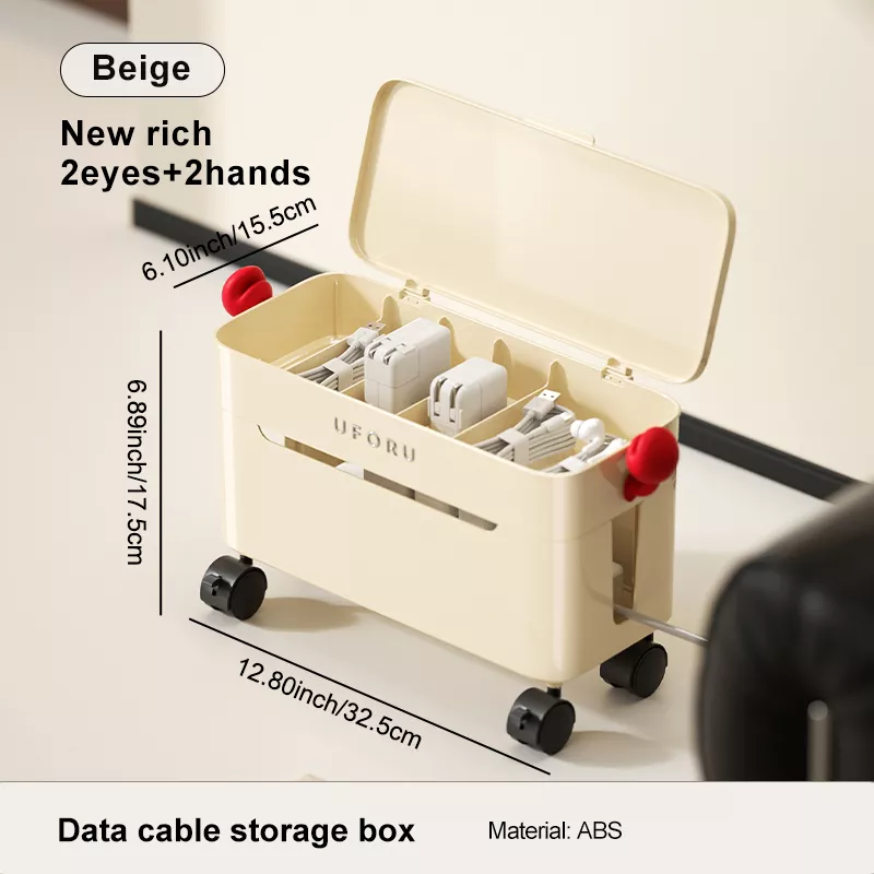 Unlike ordinary cord organizers, this storage box combines function with personality. The rolling wheels, rotatable design, and airflow vents create a smarter storage solution that adapts to your daily needs. Its modern rectangular shape fits neatly beside desks, under tables, or next to power outlets without taking up too much space.