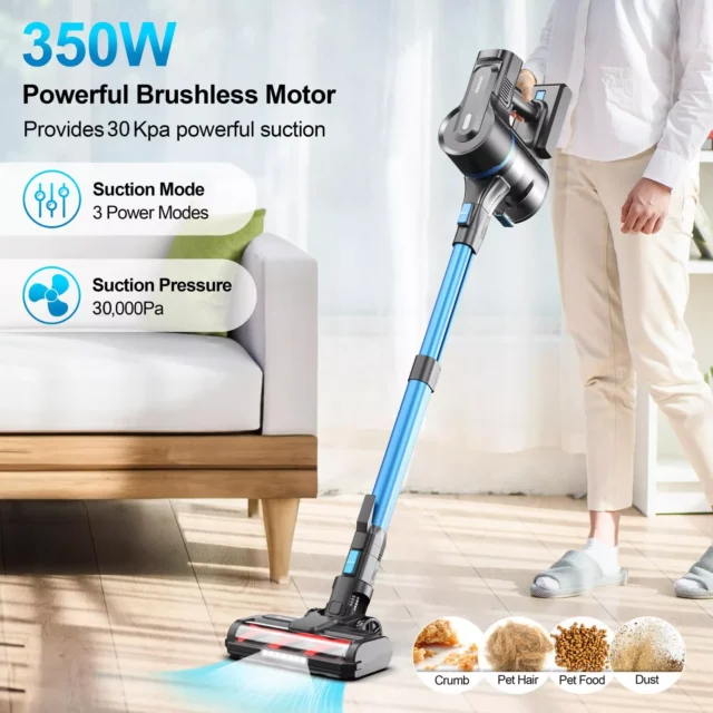 • Powerful 30Kpa Suction: Removes dust, pet hair, and debris from multiple surfaces effortlessly.