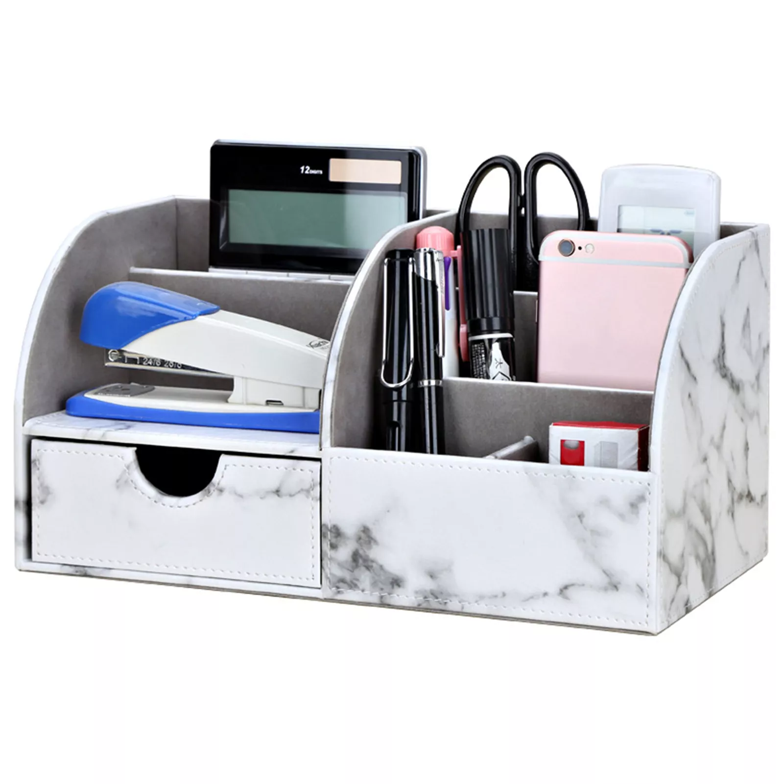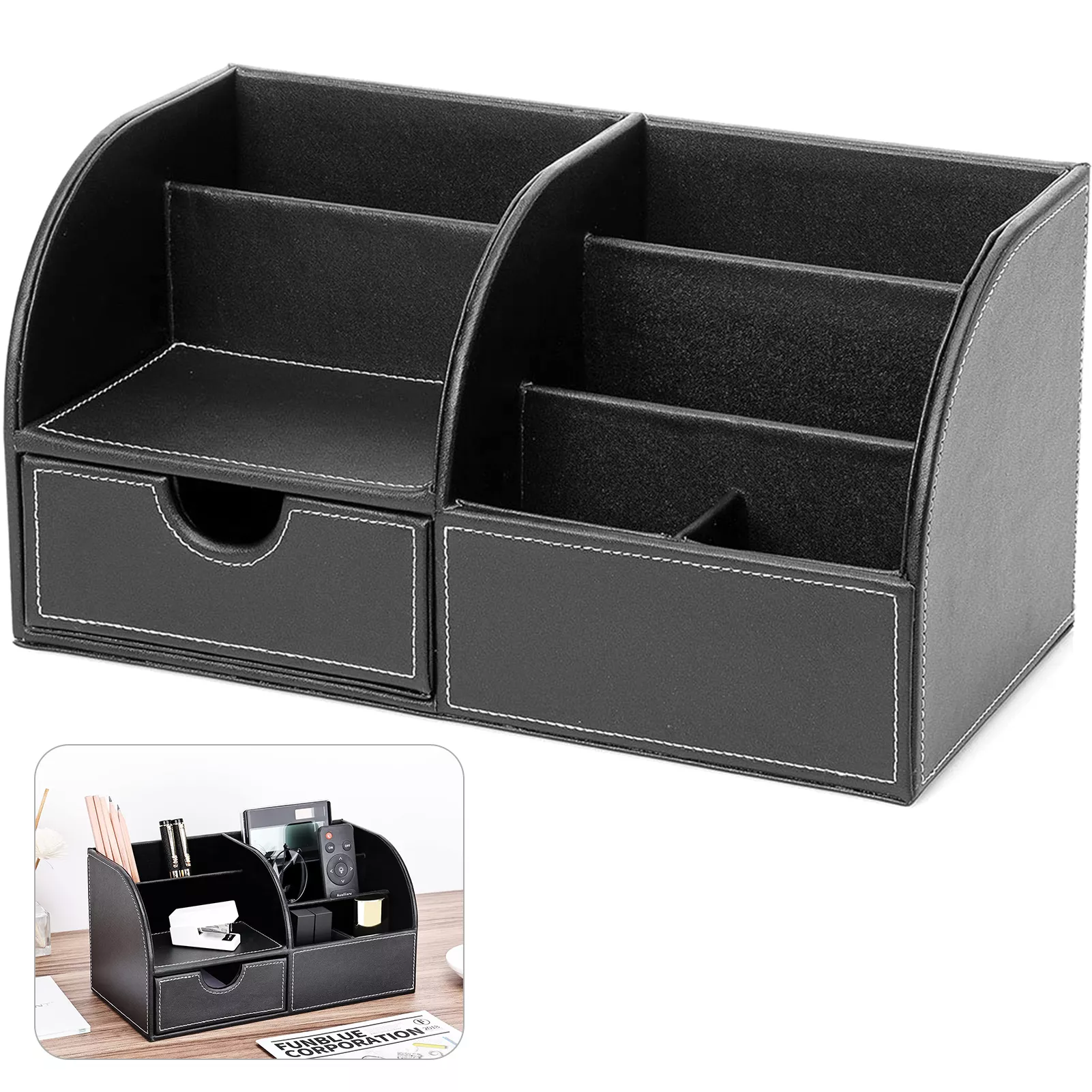 PU Leather Desk Organizer with Drawer – Multifunctional Office Storage Caddy