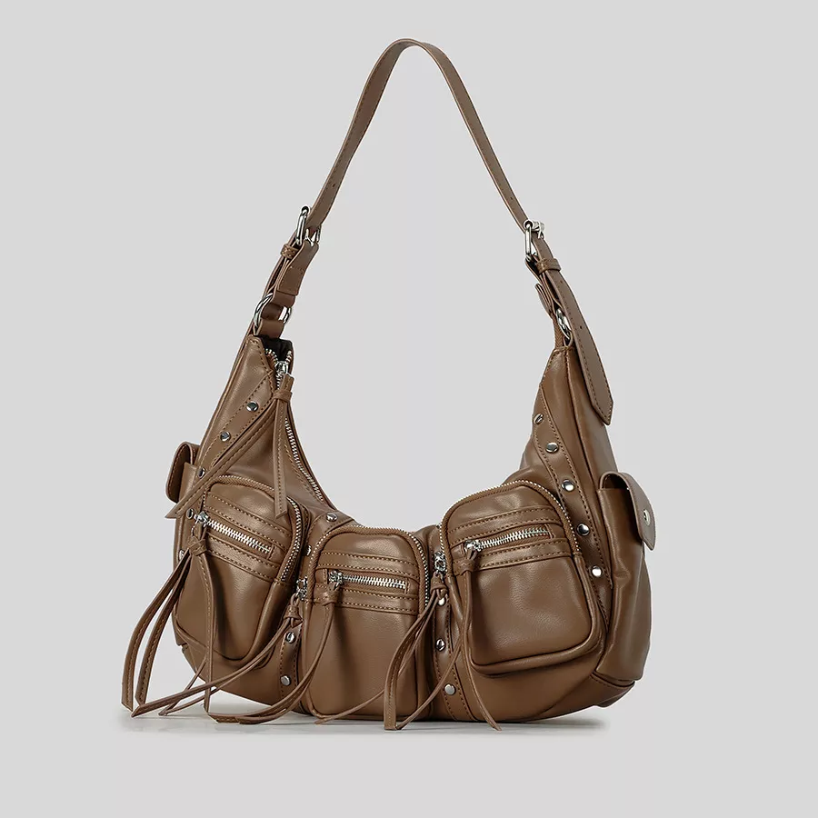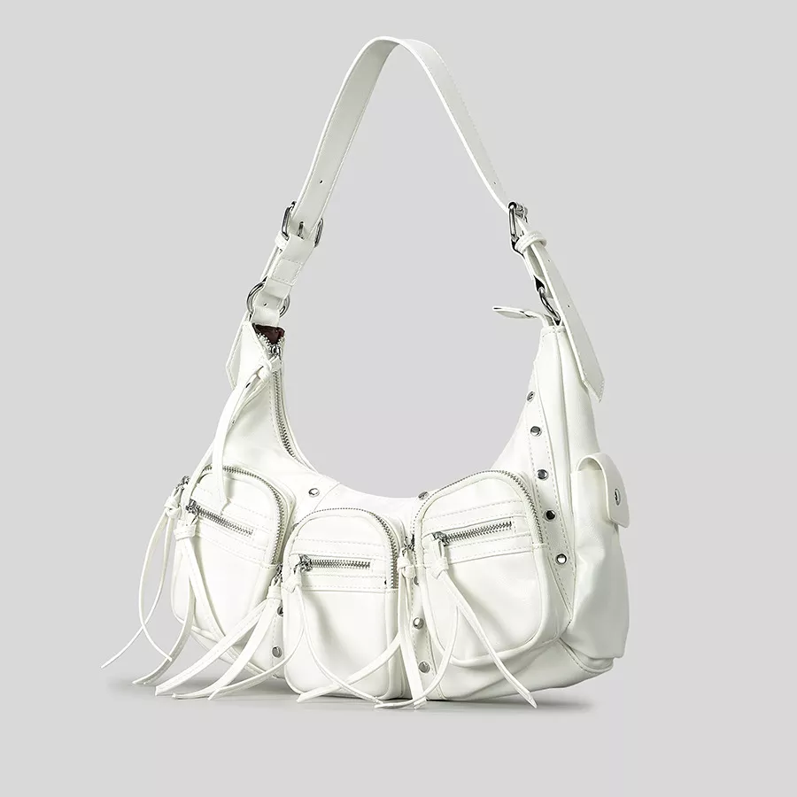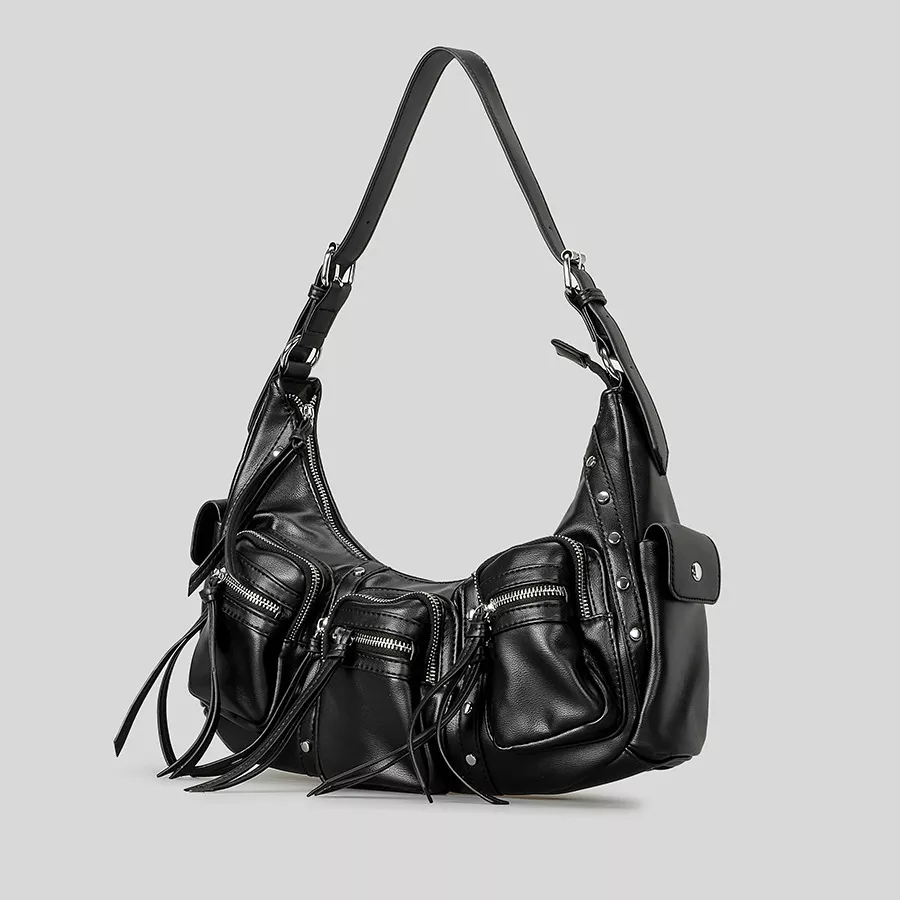 Turn heads and elevate your street-style game with this Punk Multi-Zipper Rivet Motorcycle Bag. Designed for bold fashion lovers, this shoulder bag blends rebellious moto vibes with everyday functionality. Its unique half-moon shape, edgy rivet details, and dangling tassels make it a standout accessory for any outfit. Whether you’re hitting the city streets, heading to a concert, or out for a night with friends, this trend-forward handbag brings just the right amount of attitude.