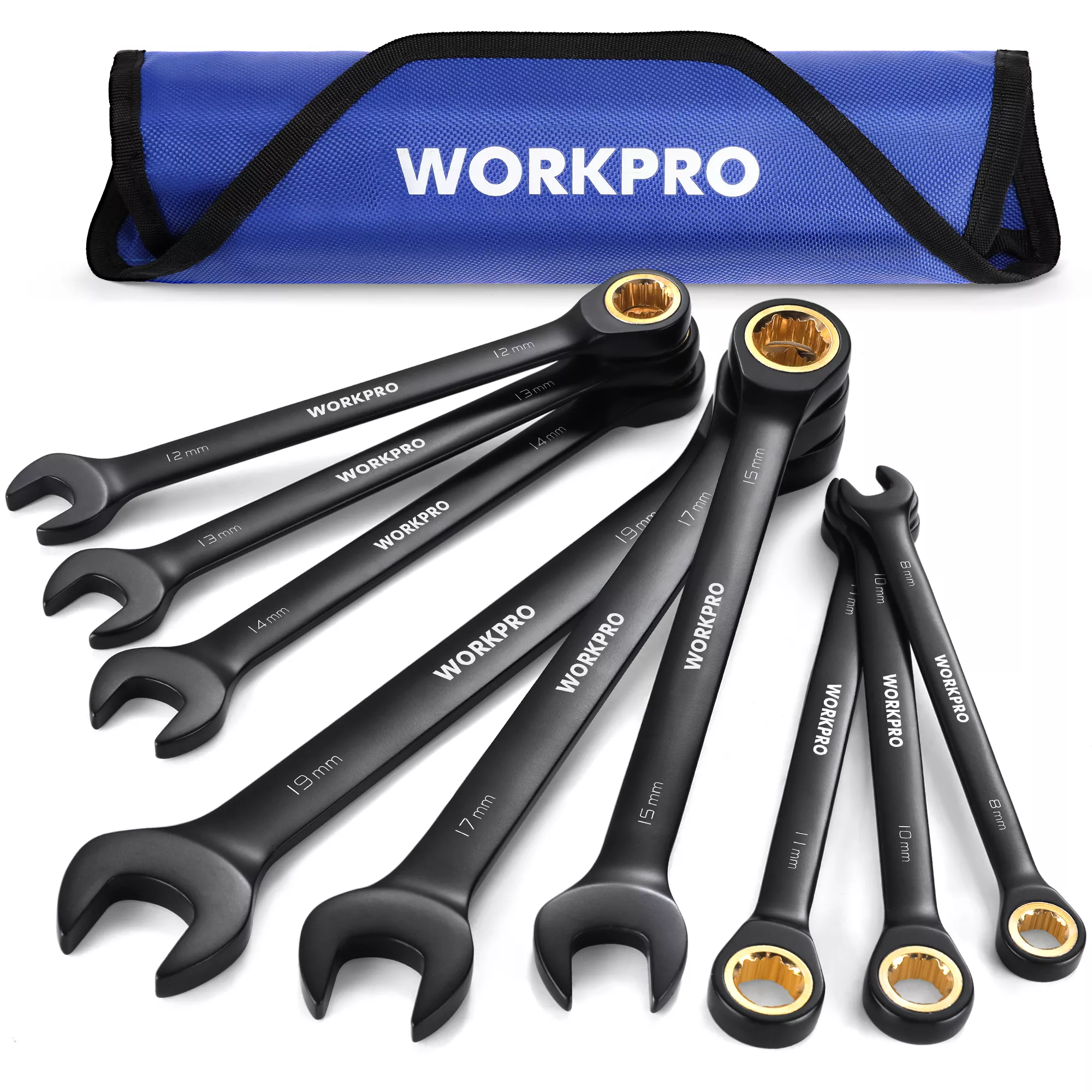 This wrench set is packed with features that make it a must-have for both professionals and DIY enthusiasts. Each wrench is equipped with an anti-slip open-end and a ratcheting box end, making it easier to handle even the toughest jobs. The set includes metric sizes from 8 mm to 19 mm, covering all the most common sizes you’ll need for automotive repairs, household projects, and mechanical work.