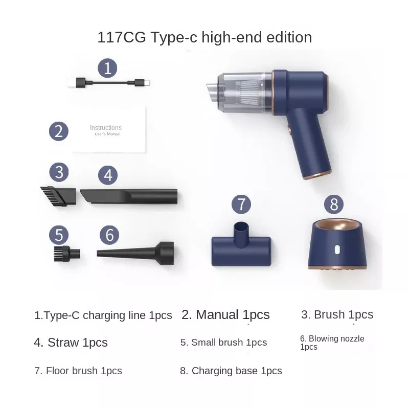 Experience the ultimate cleaning convenience with our Rechargeable Handheld Vacuum Cleaner, designed to tackle dust, dirt, and debris in your car and home with ease. Whether it’s your vehicle’s interior or your home’s floors, this versatile vacuum cleaner offers impressive suction power and portability for all your cleaning needs. With a sleek dark blue ABS body and a lightweight design, it’s easy to use and store, making it the perfect tool for quick clean-ups anywhere.