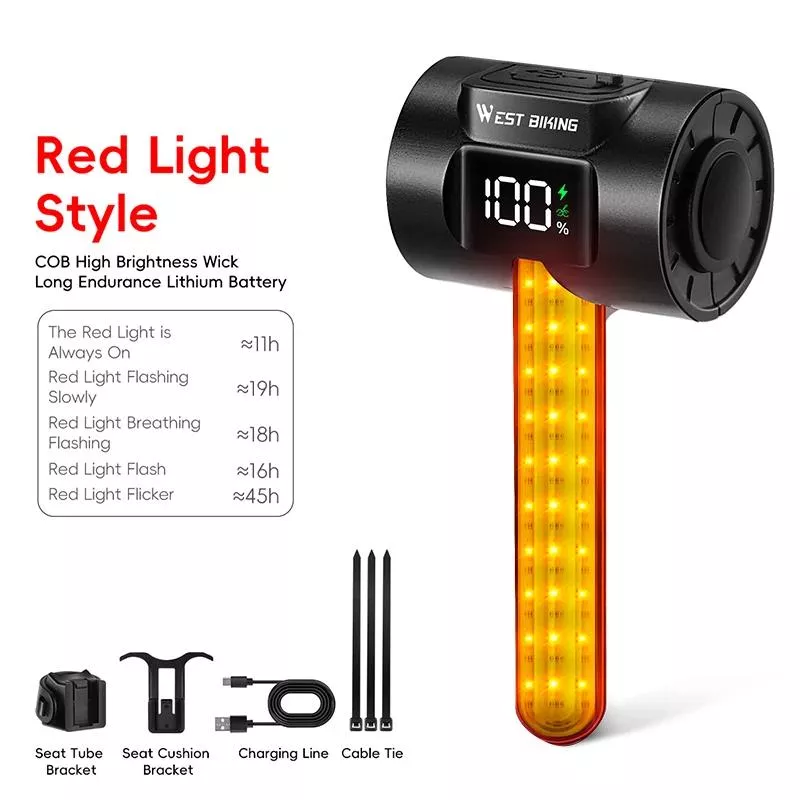 Rechargeable LED Bike Taillight with Power Display & Intelligent Sensing