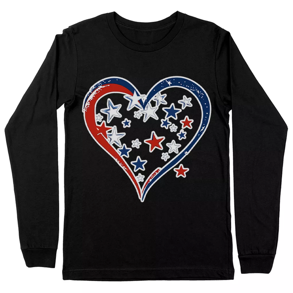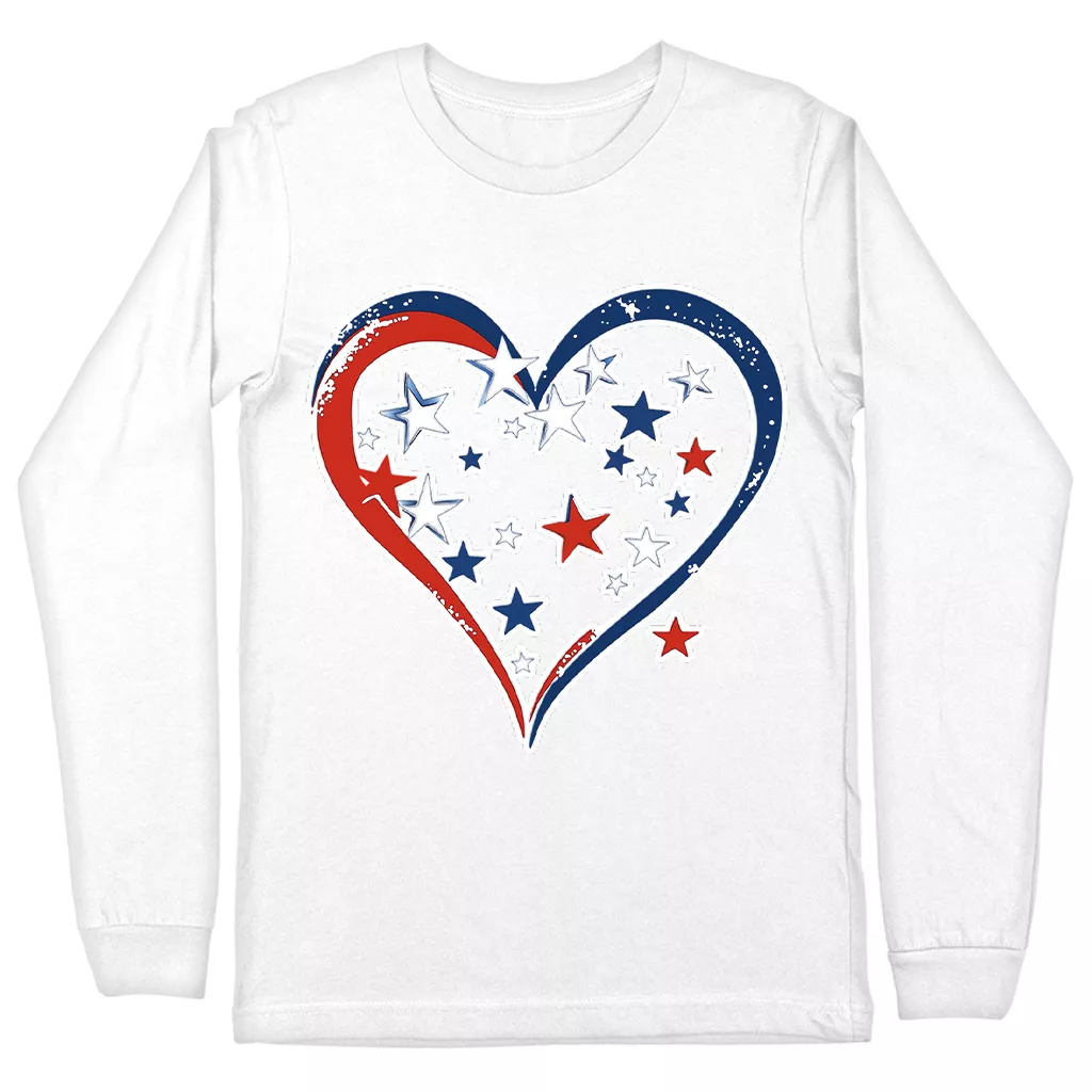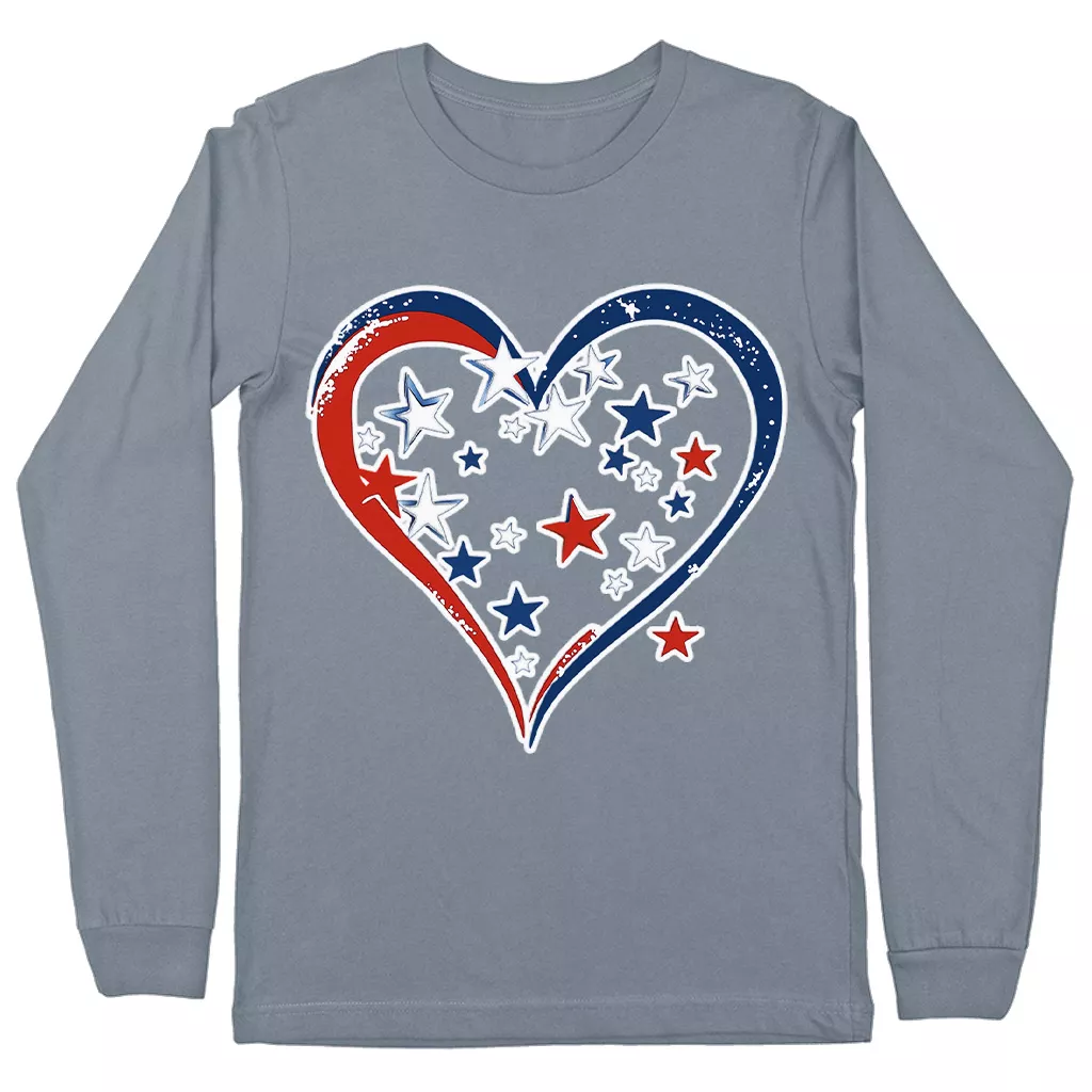 Red White Blue Heart Long Sleeve T-Shirt – USA Flag T-Shirt – Cute USA Basic Tee