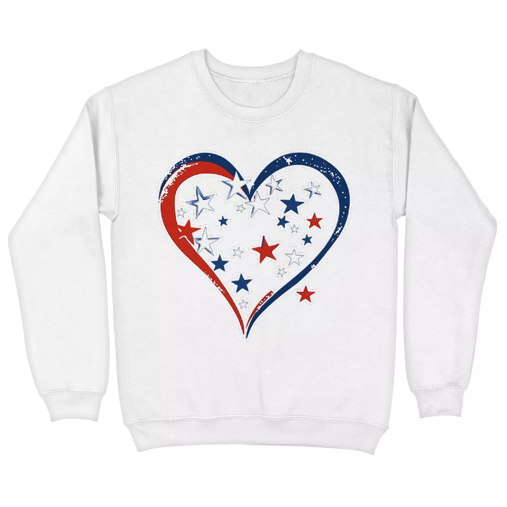 Red White Blue Heart Sweatshirt – Cute USA Crewneck Sweatshirt – USA Flag Unisex Sweatshirt