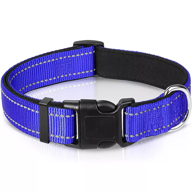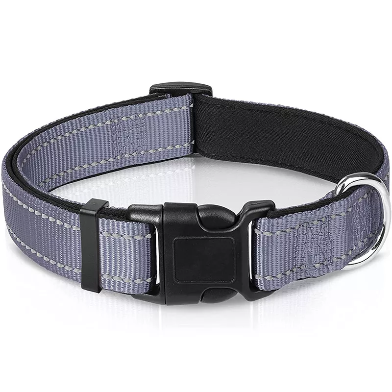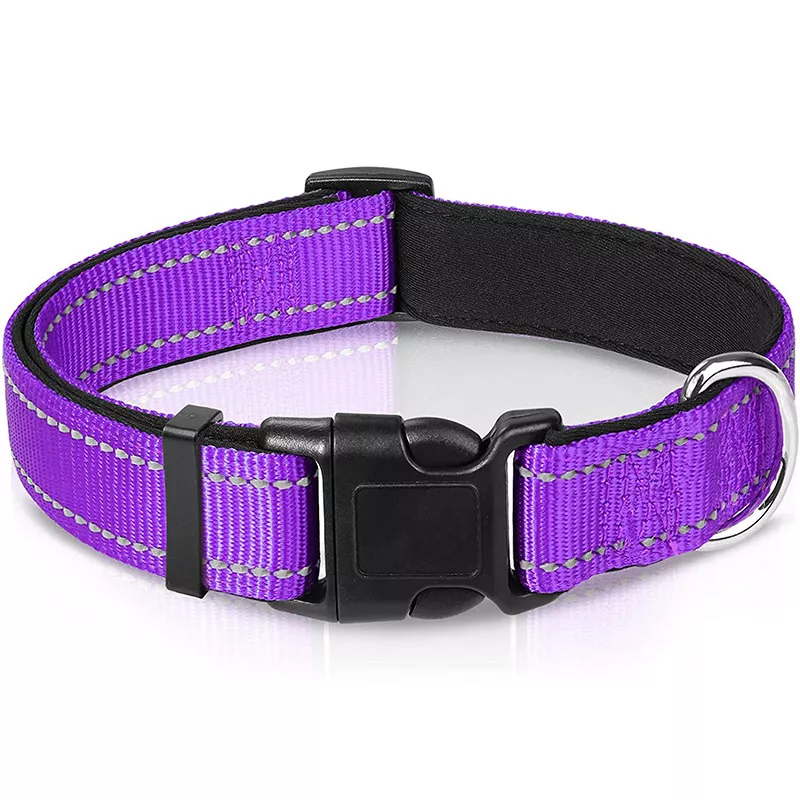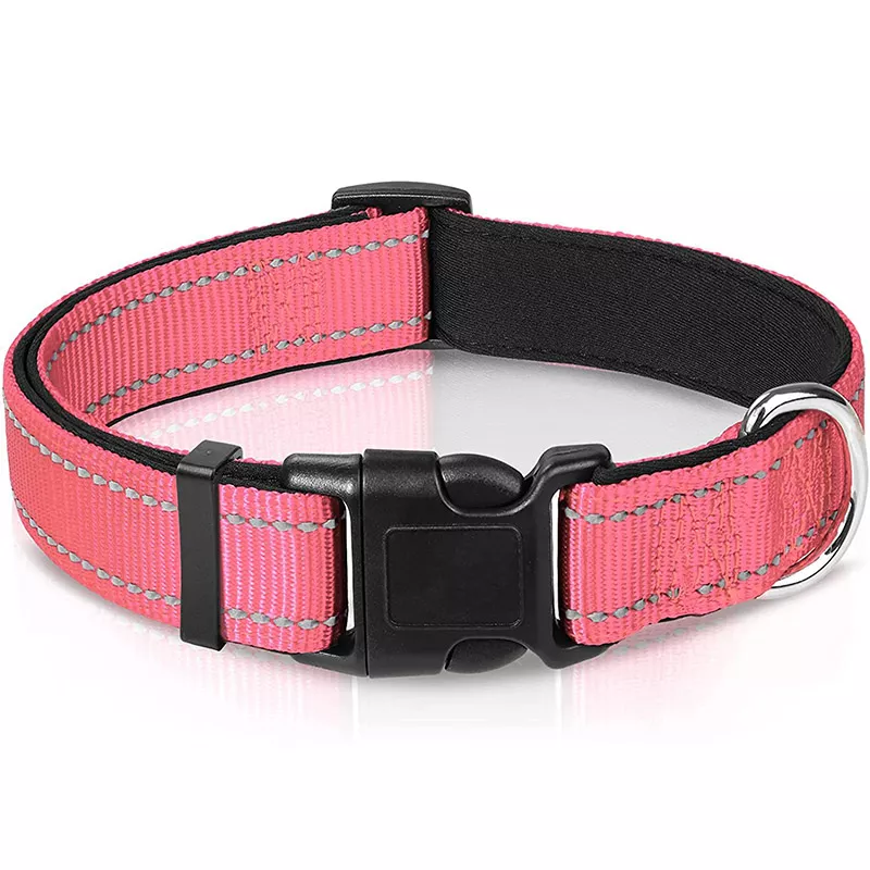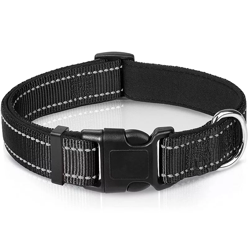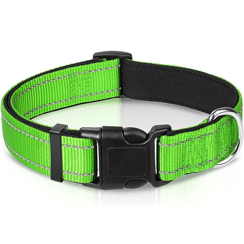 Reflective Adjustable Soft Padded Nylon Dog Collar for Night Safety