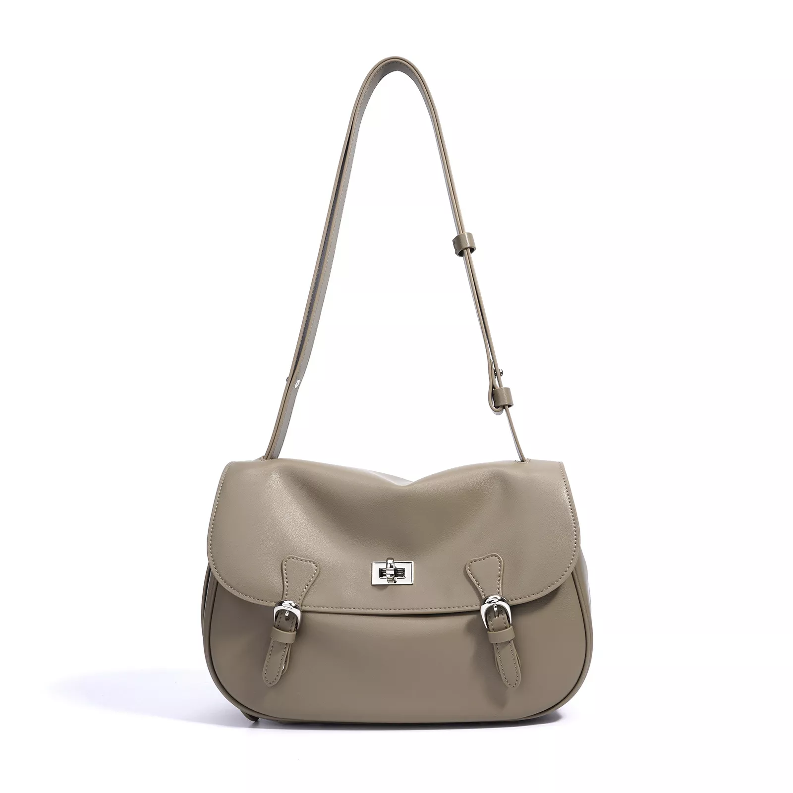 With a clean flap closure and soft satchel shape, this handbag exudes understated elegance. Its minimalist design complements both casual and semi-formal outfits effortlessly. Available in a range of muted, sophisticated shades—gray, black, beige, and apricot—it’s an accessory you’ll reach for in every season.