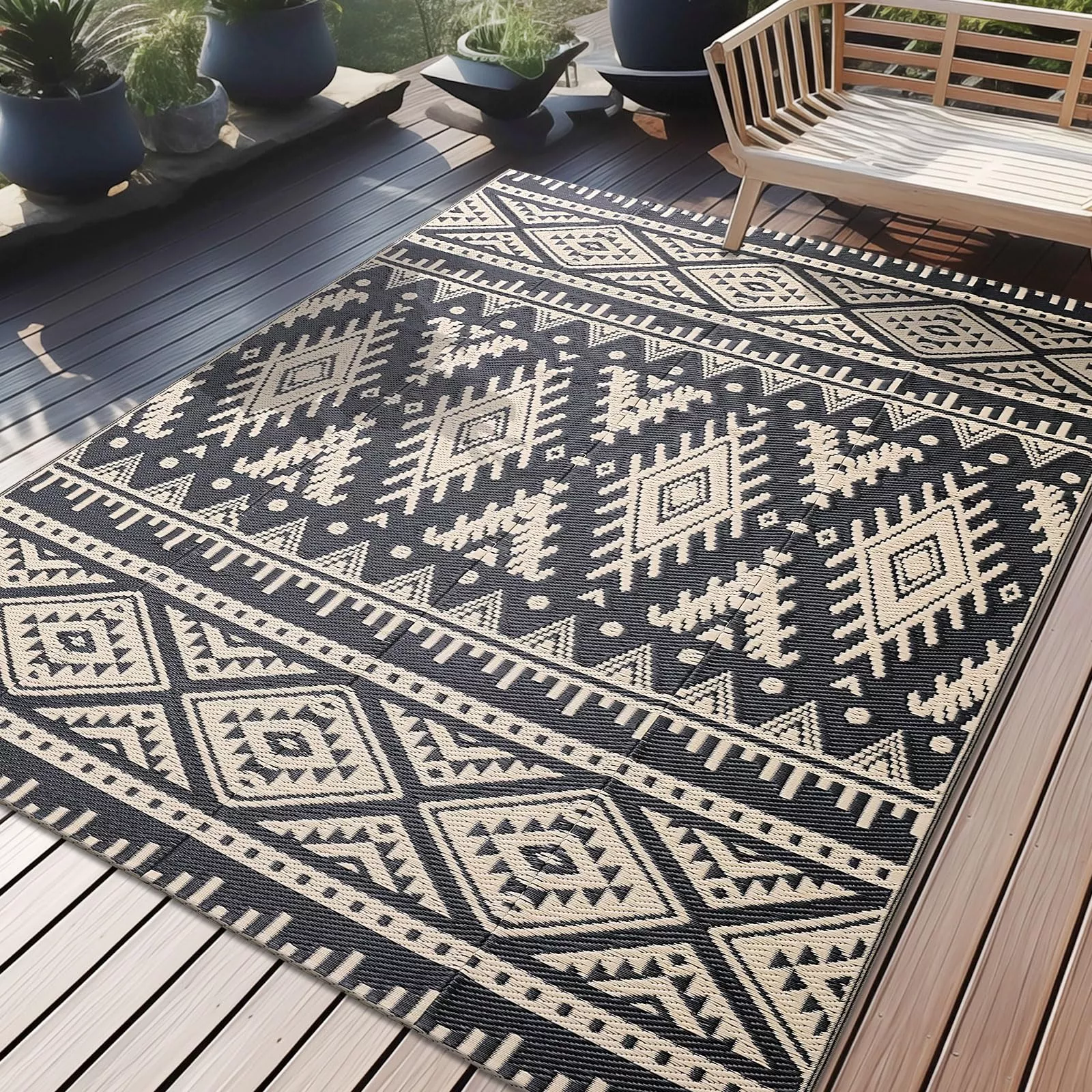 Bring style, comfort, and practicality to your favorite outdoor spots with the Reversible Waterproof Outdoor Rug. Designed with a modern geometric pattern on both sides, this rug lets you switch up your look anytime you like. Whether you’re setting up a cozy patio corner, enjoying a family picnic, relaxing on a rooftop, or heading out for a weekend camping trip, this versatile rug makes every setting more inviting and comfortable.