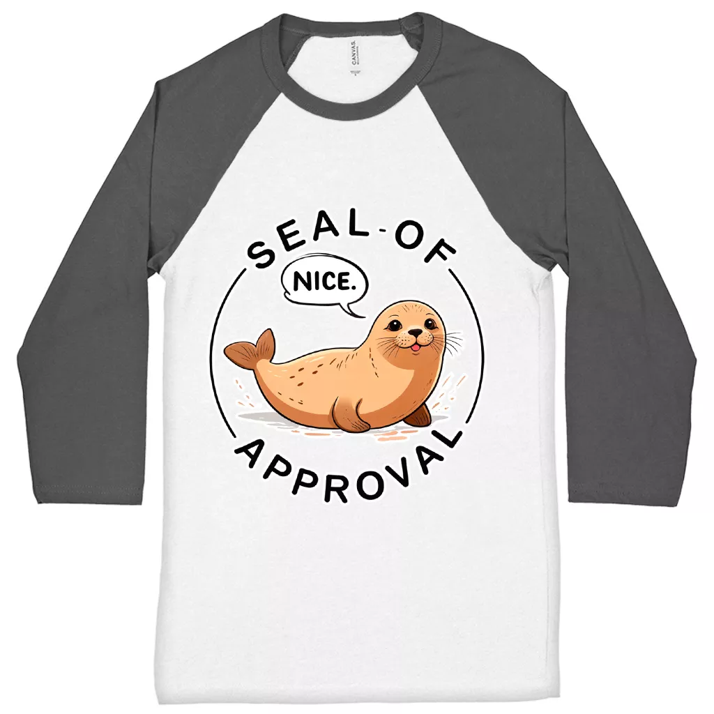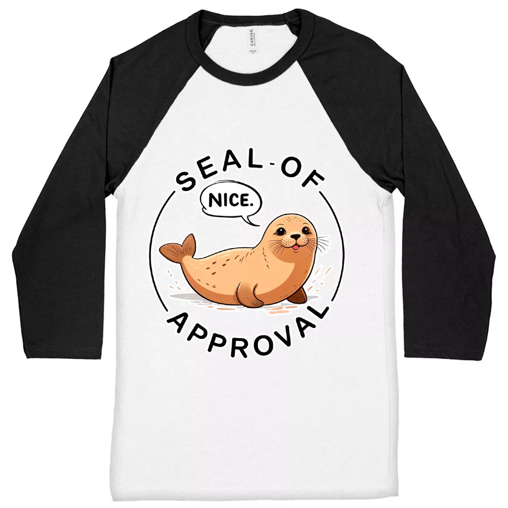 Seal Of Approval Baseball T-Shirt – Cute Pun 3/4 Sleeve – Seal Lover Raglan Jersey Shirt