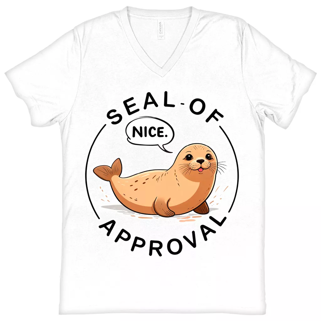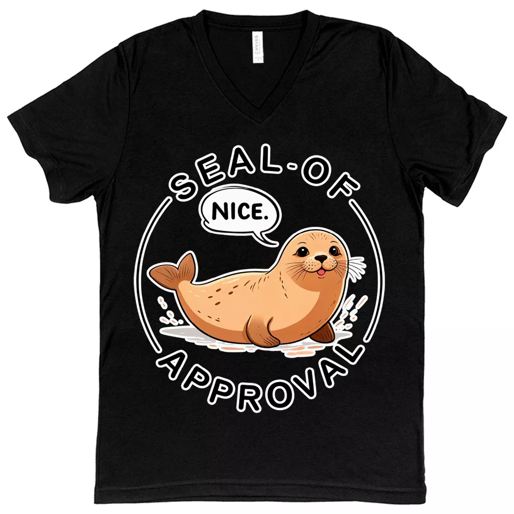 Seal Of Approval V-Neck T-Shirt – Cute Pun Basic T-Shirt – Seal Lover Tee